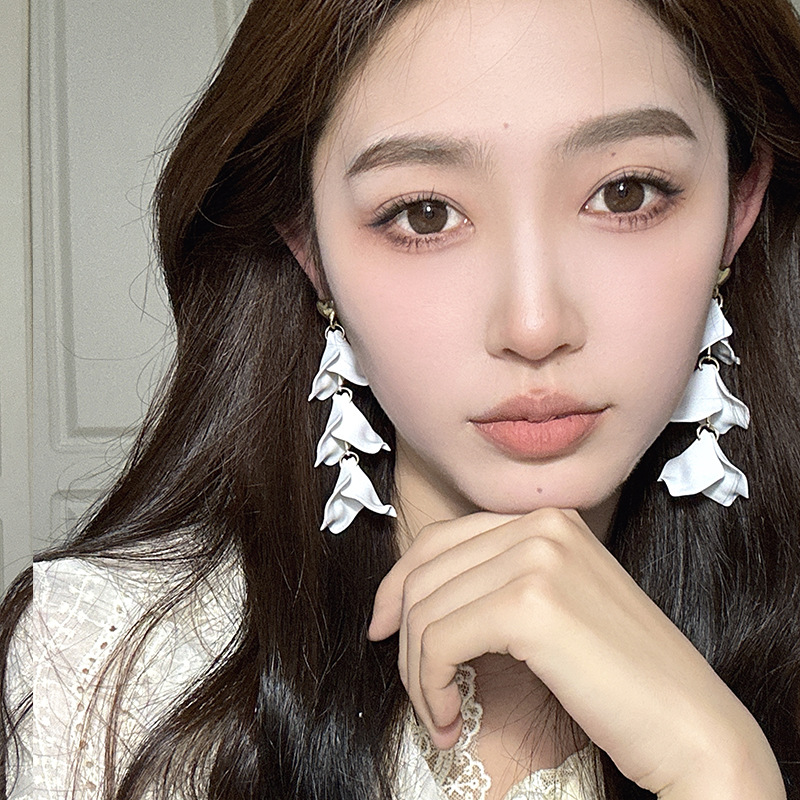裙摆贝壳花超仙花瓣耳环女气质长款甜美耳坠小众新款夸张耳钉耳饰