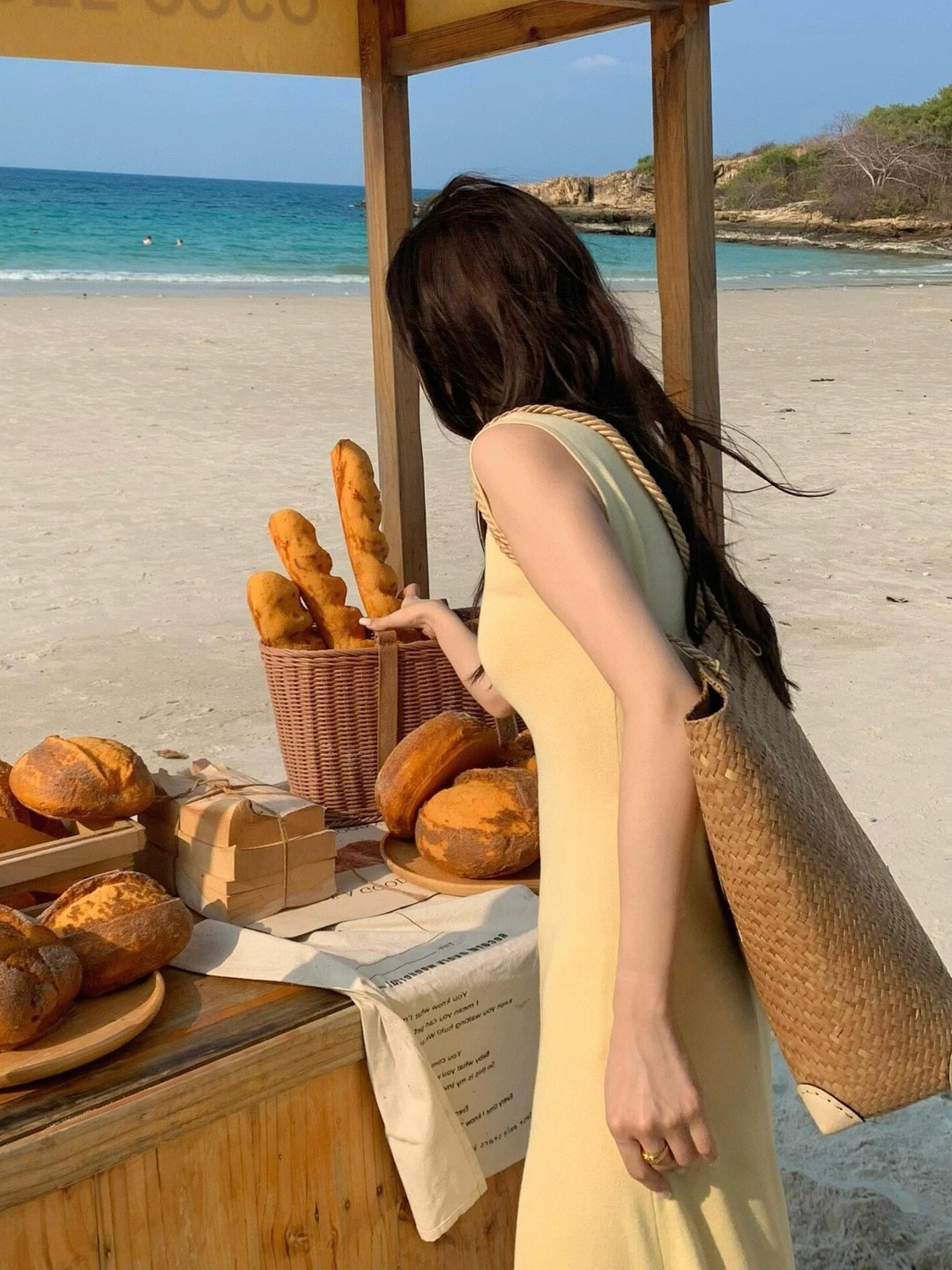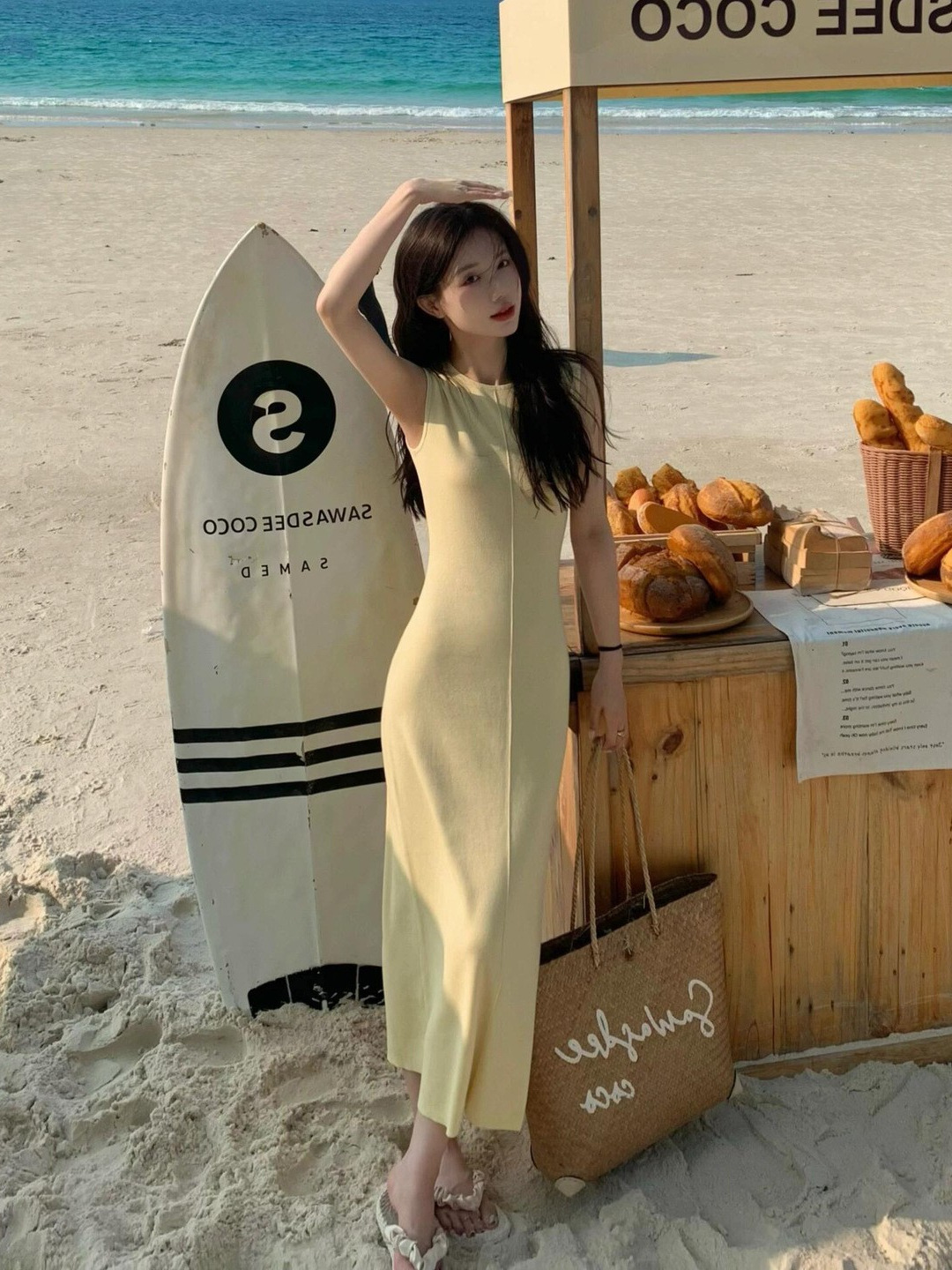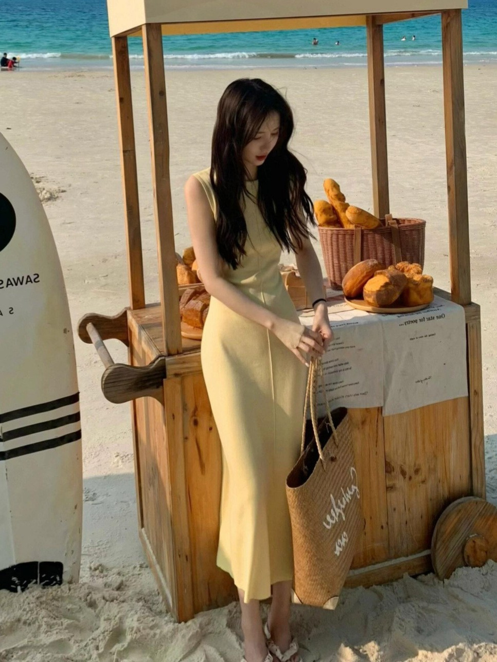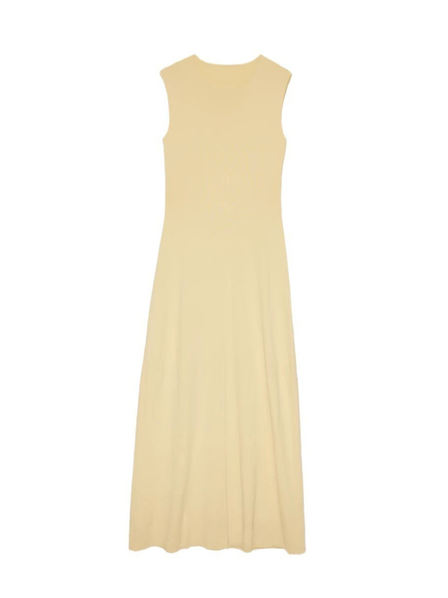 法式温柔风黄色针织背心连衣裙女春夏季新款高级感无袖修身长裙子