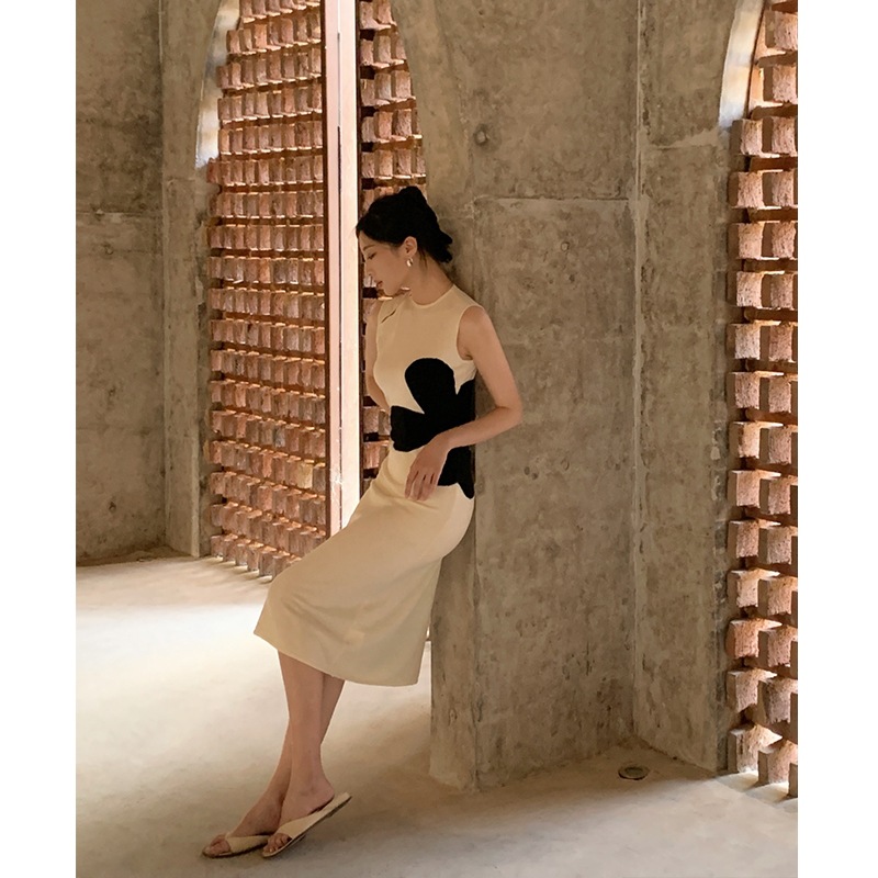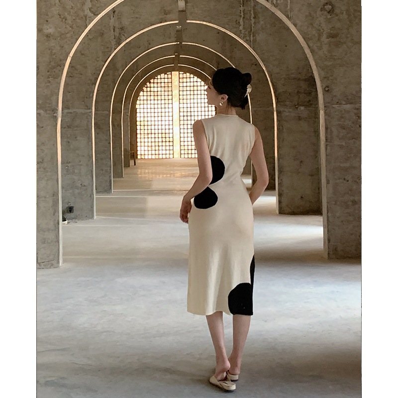 新中式国风改良旗袍包臀长裙春季新款白色花朵无袖背心针织连衣裙