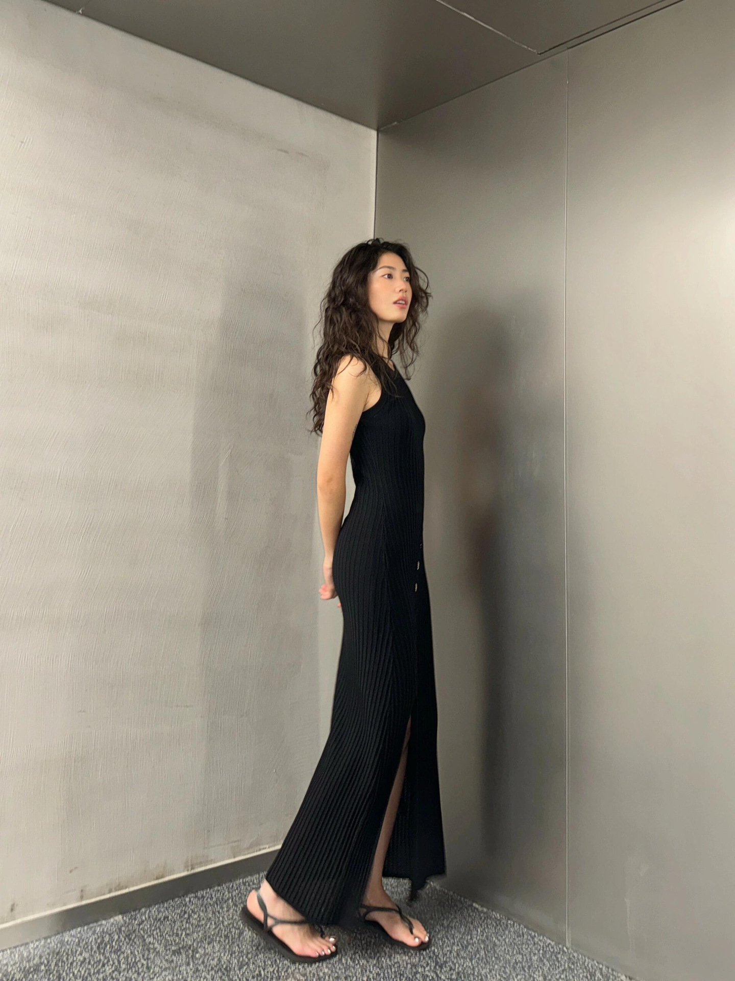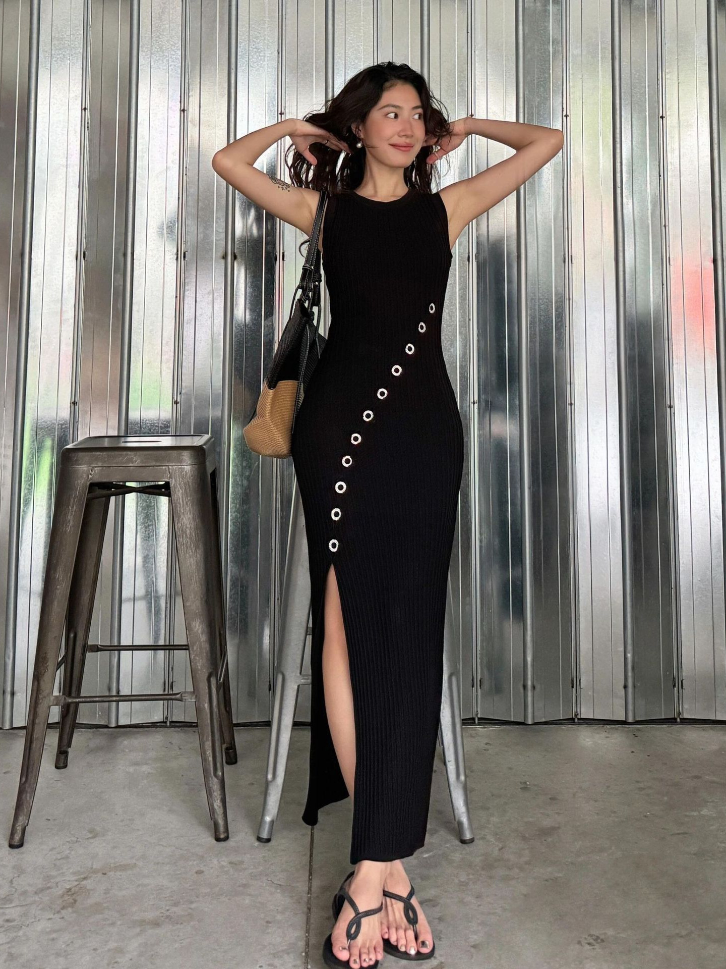 御姐轻熟风气质修身连衣裙女夏季新款开叉绝美设计感针织长裙