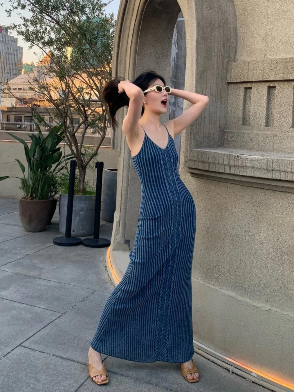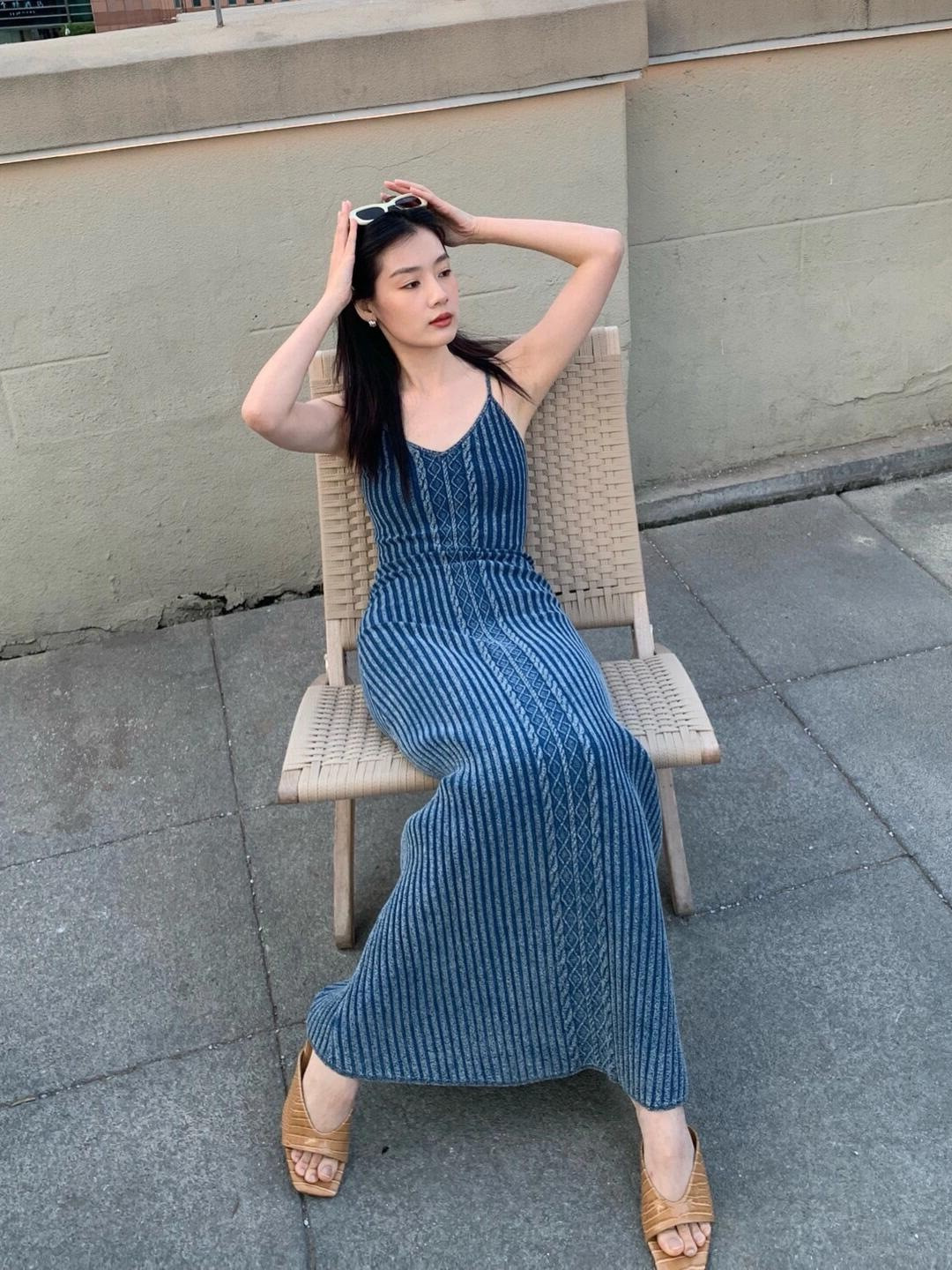 高级设计感度假风针织吊带连衣裙性感别致修身显瘦沙滩长裙女夏季