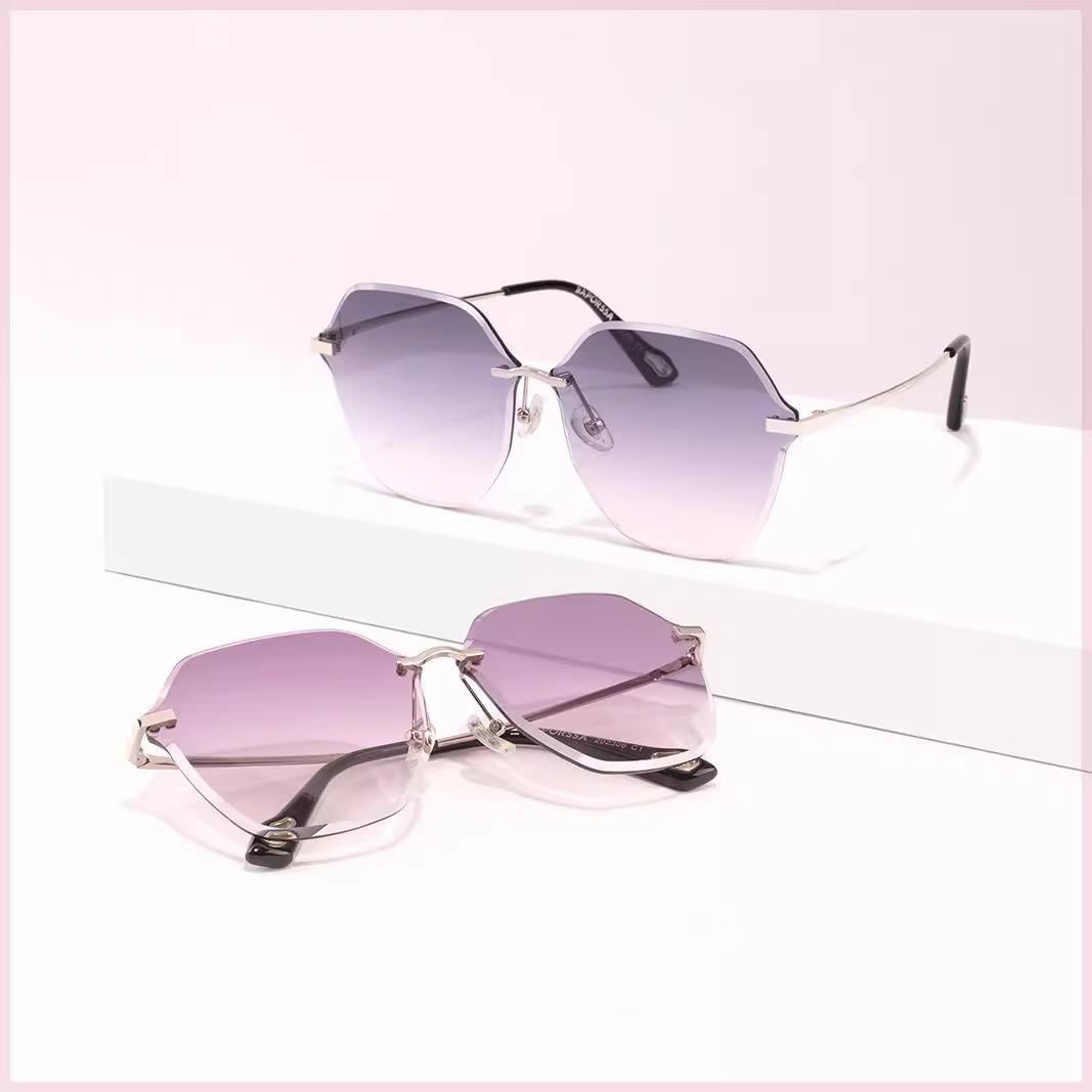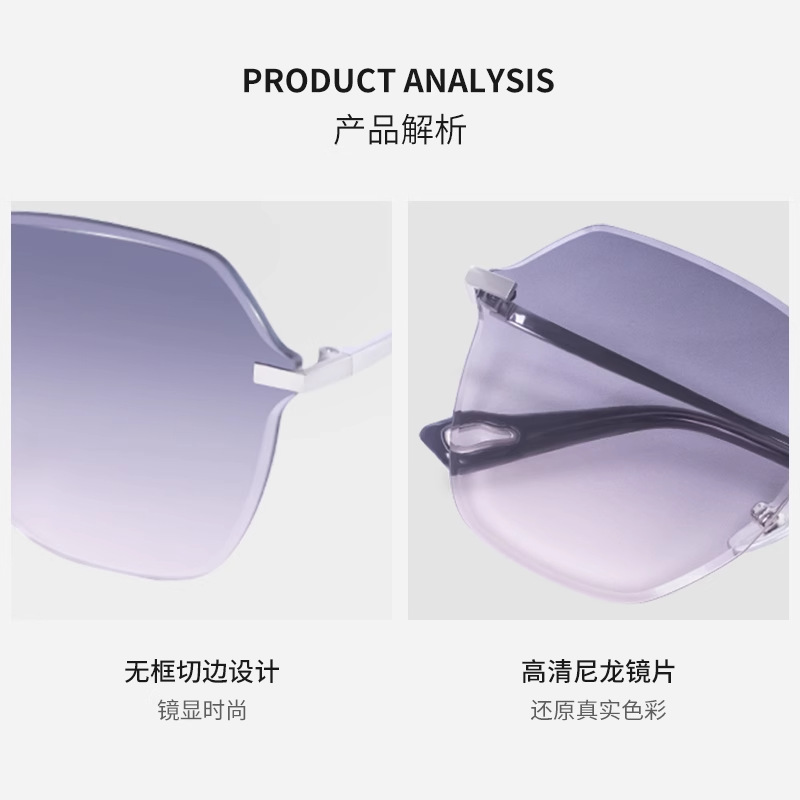 网红时尚女士太阳镜防紫外线不偏光无框女款时尚高端太阳眼镜爆款