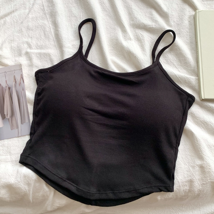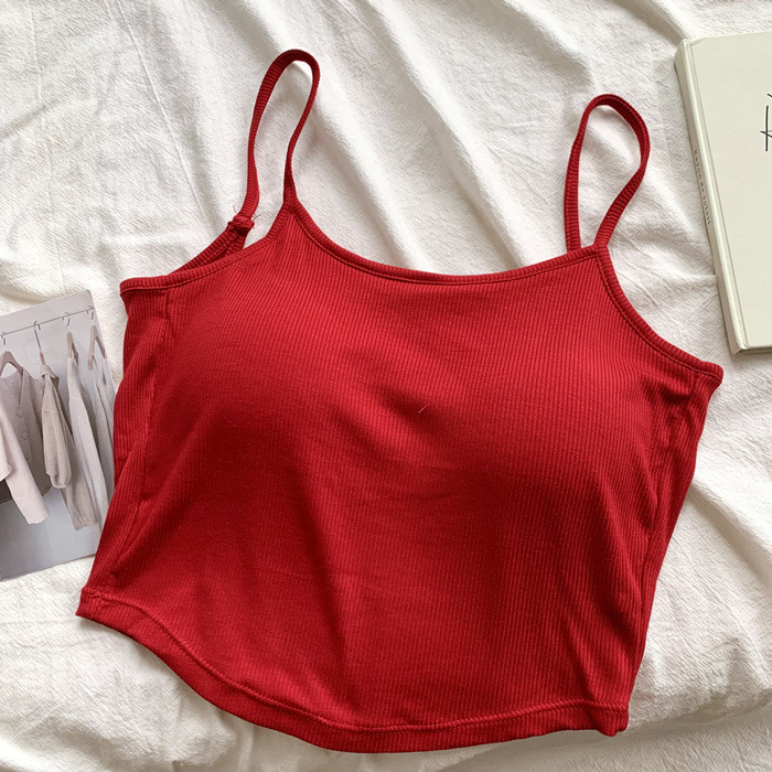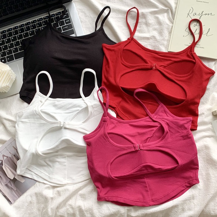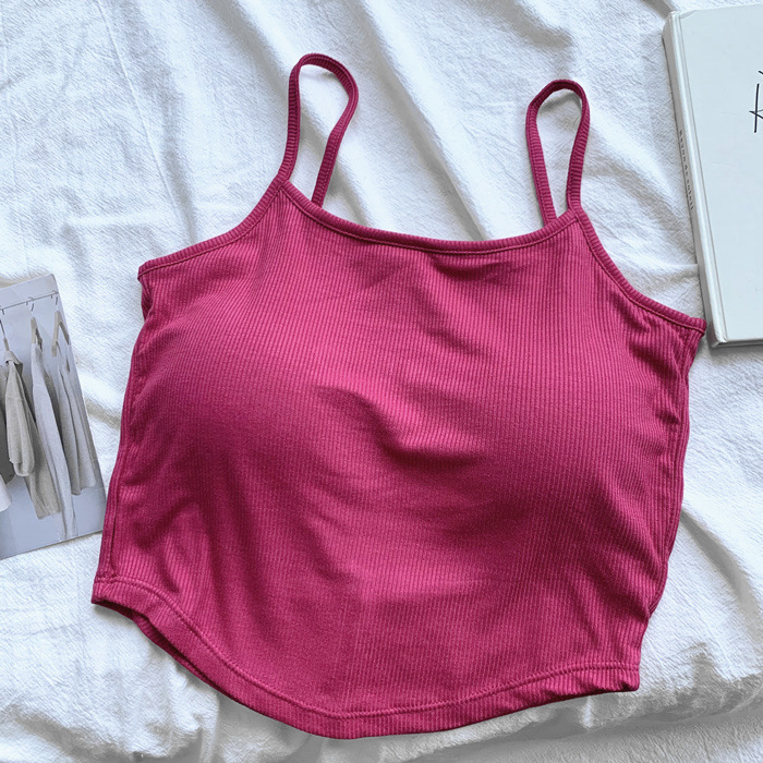 新款纯色甜辣风胸垫一体杯美背裹胸吊带背心辣妹内搭露背打底上衣