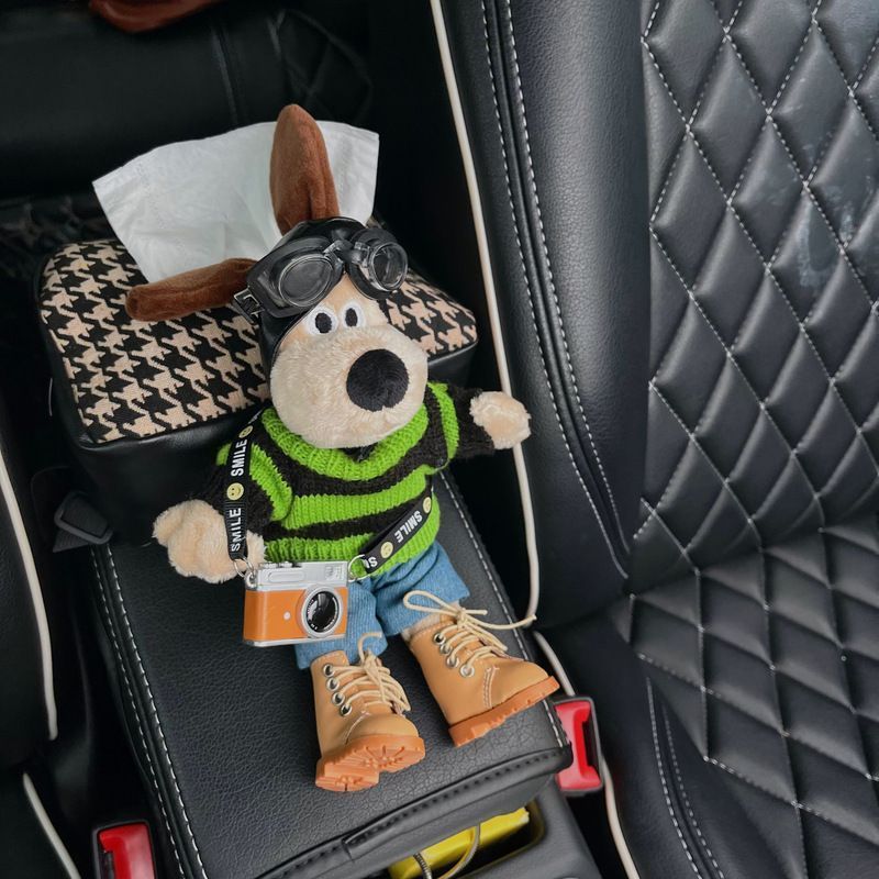 可爱掌门狗公仔汽车扶手箱多功能绑带车内纸巾包车内纸巾盒车载