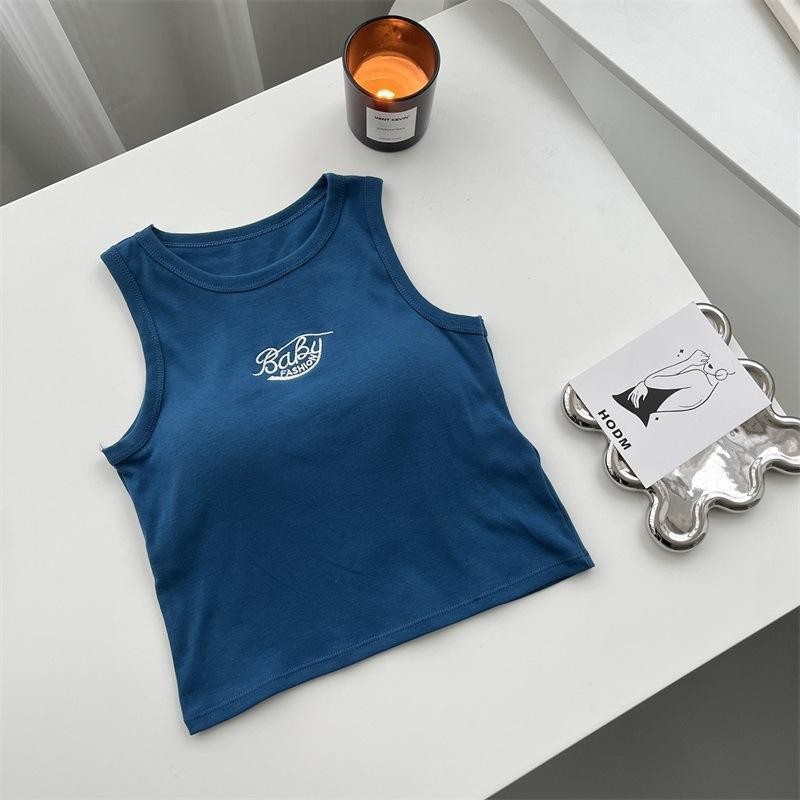 夏季纯棉刺绣字母美背内衣一体杯辣妹背心内搭防走光裹胸打底上衣