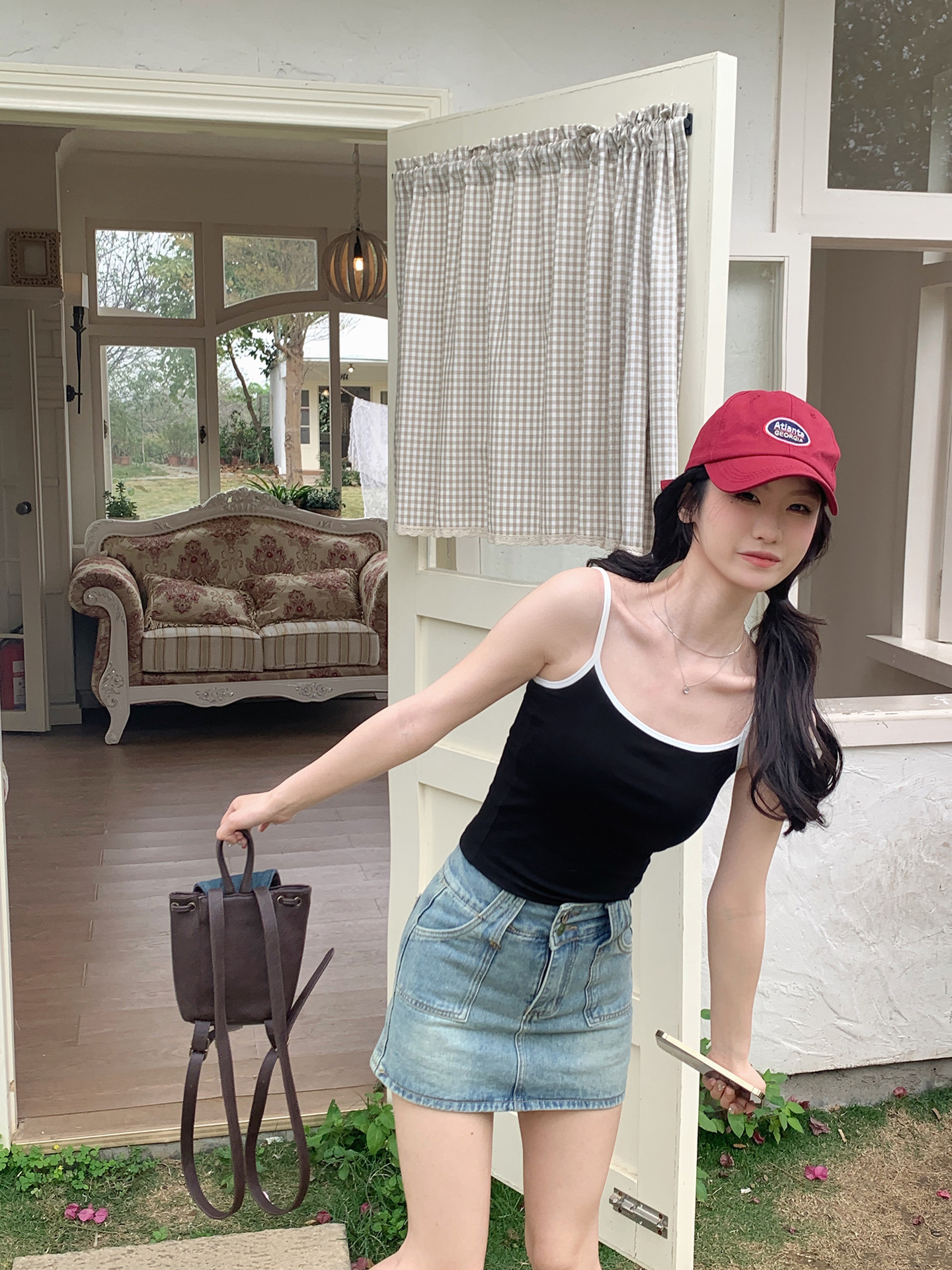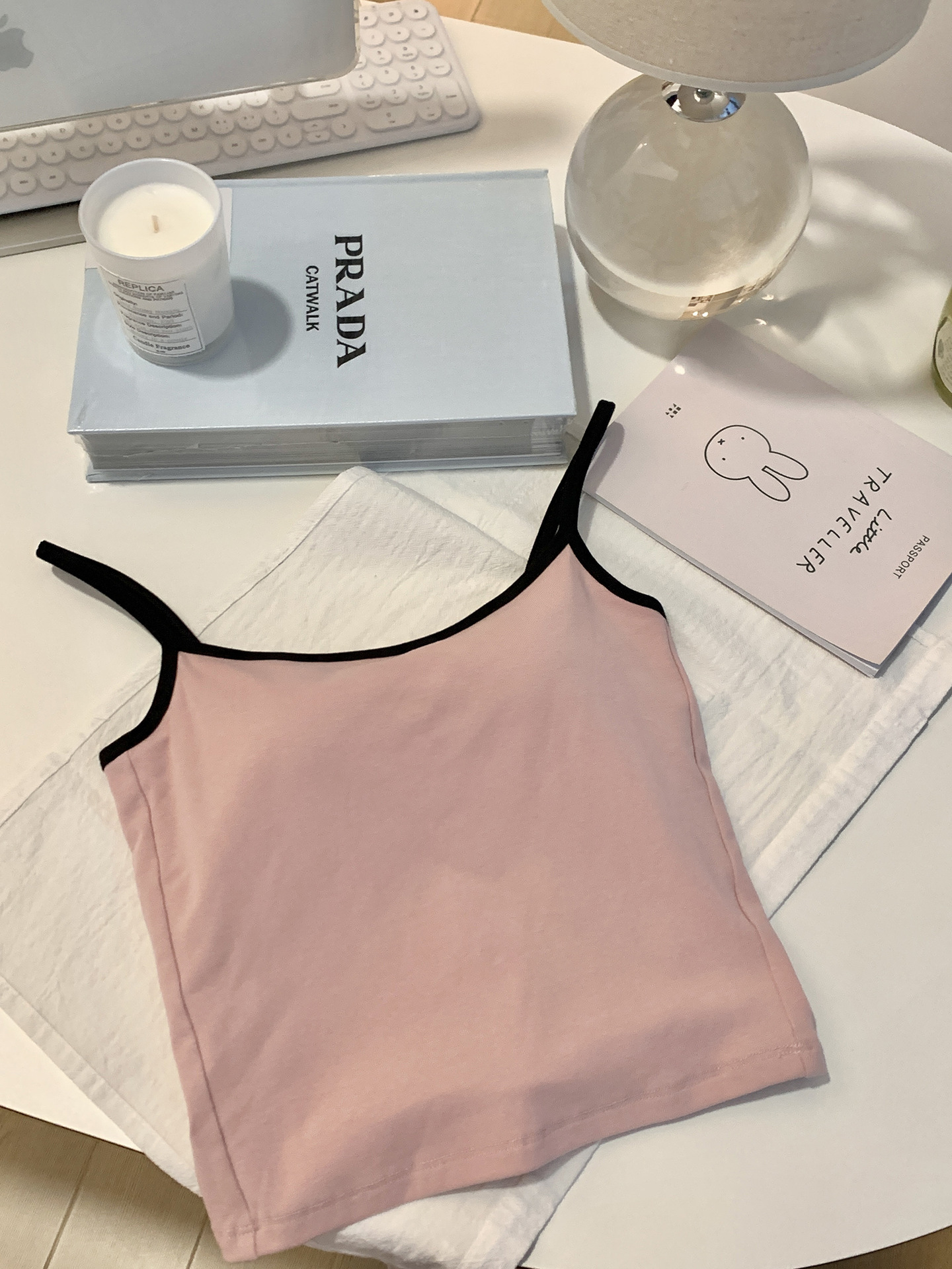 纯欲辣妹风撞色吊带美背内衣内搭胸垫一体裹胸外穿防走光打底上衣