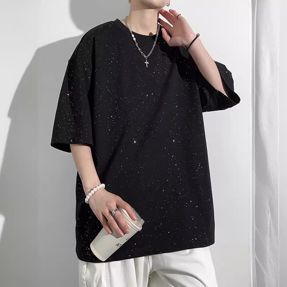 新款满天星短袖t恤男士夏季黑色体恤半袖宽松男生上衣服