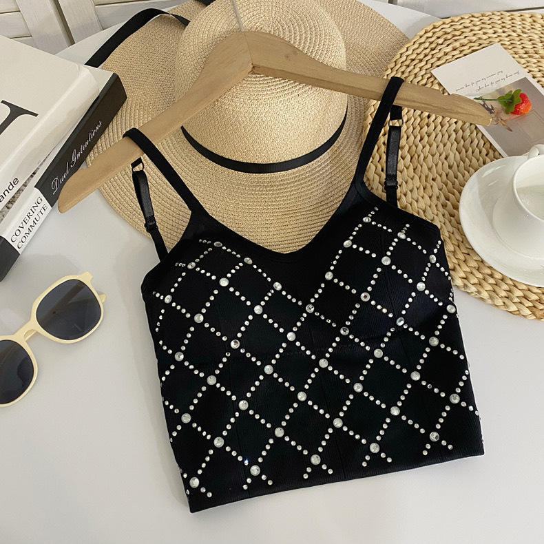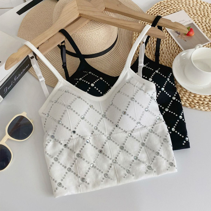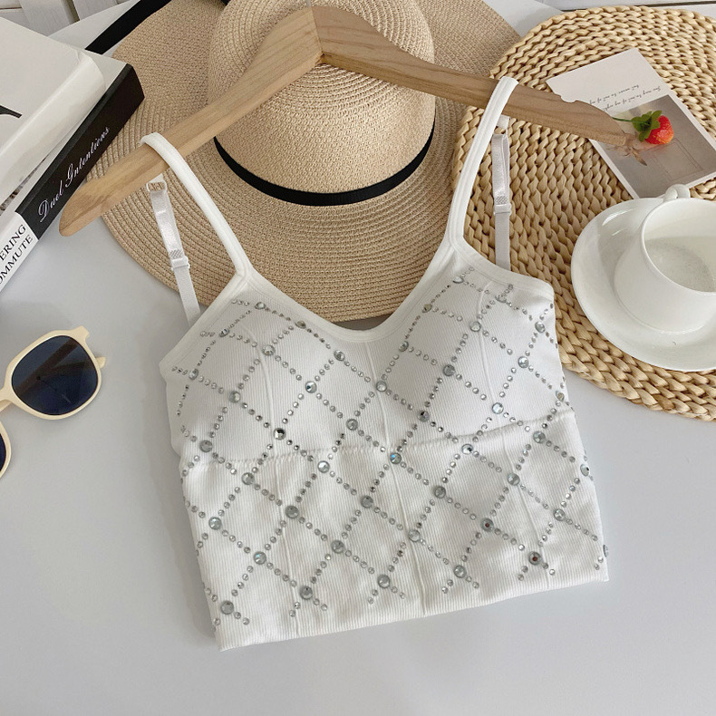 纯欲风设计感小众烫钻美背背心小吊带裹胸内搭修身外穿甜辣妹上衣
