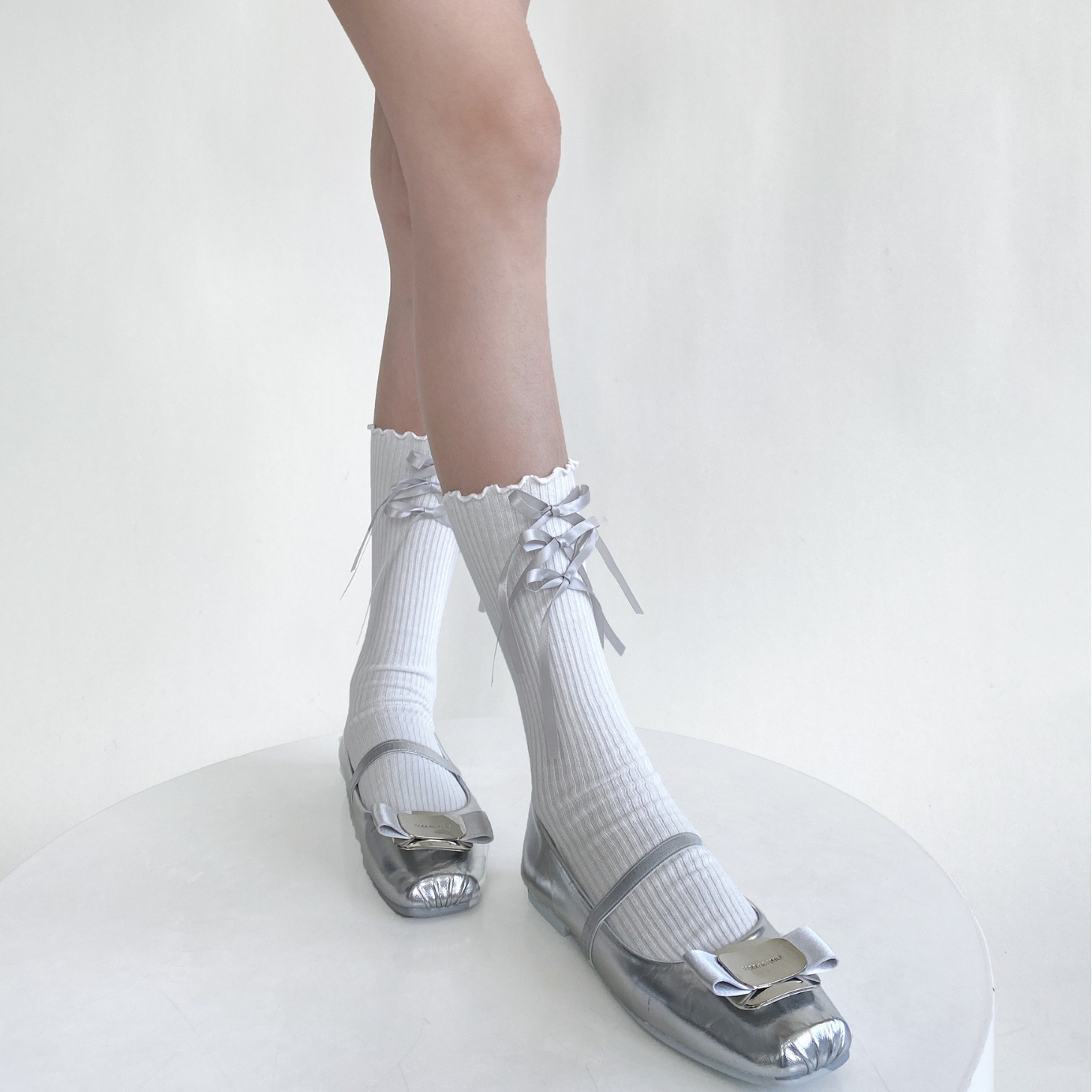 甜美少女风日系蝴蝶结木耳边白色棉袜春夏季芭蕾风百搭款中筒袜子