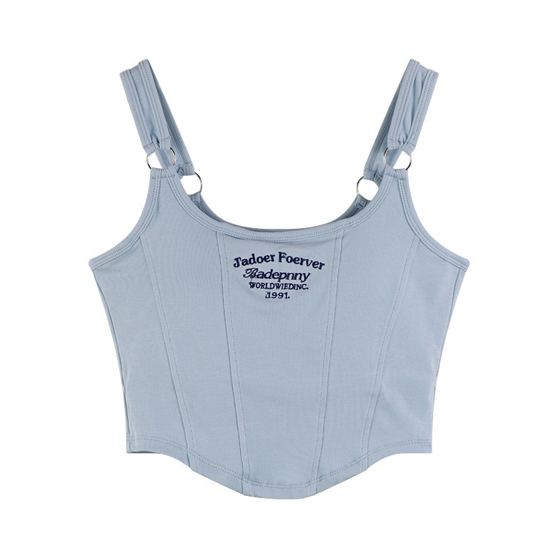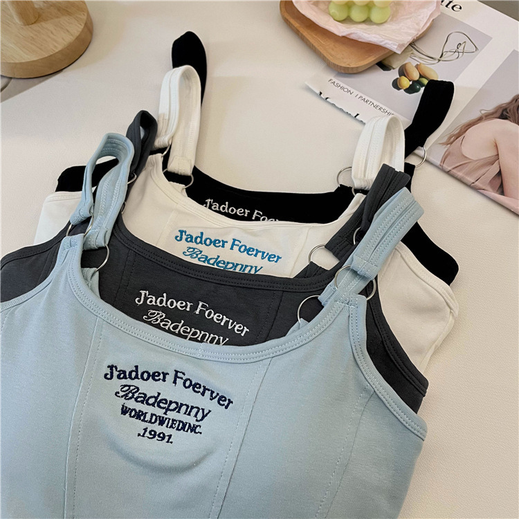 夏季辣妹吊带背心固定胸垫一体字母印花美背内衣内搭打底裹胸上衣