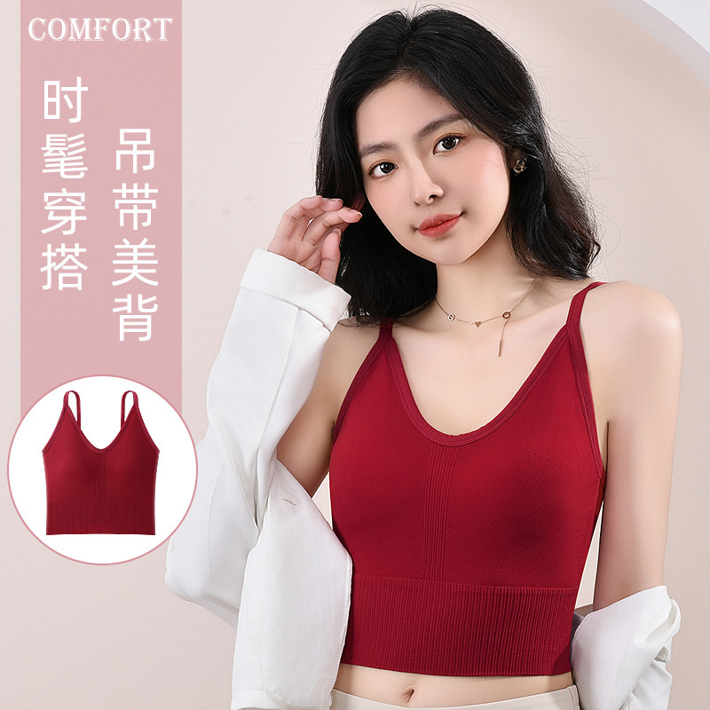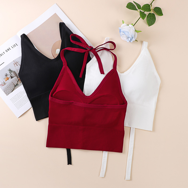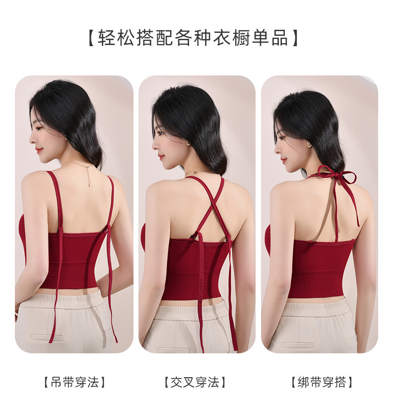 辣妹设计感系带挂脖两穿吊带美背背心短款内搭裹胸带胸垫女士内衣