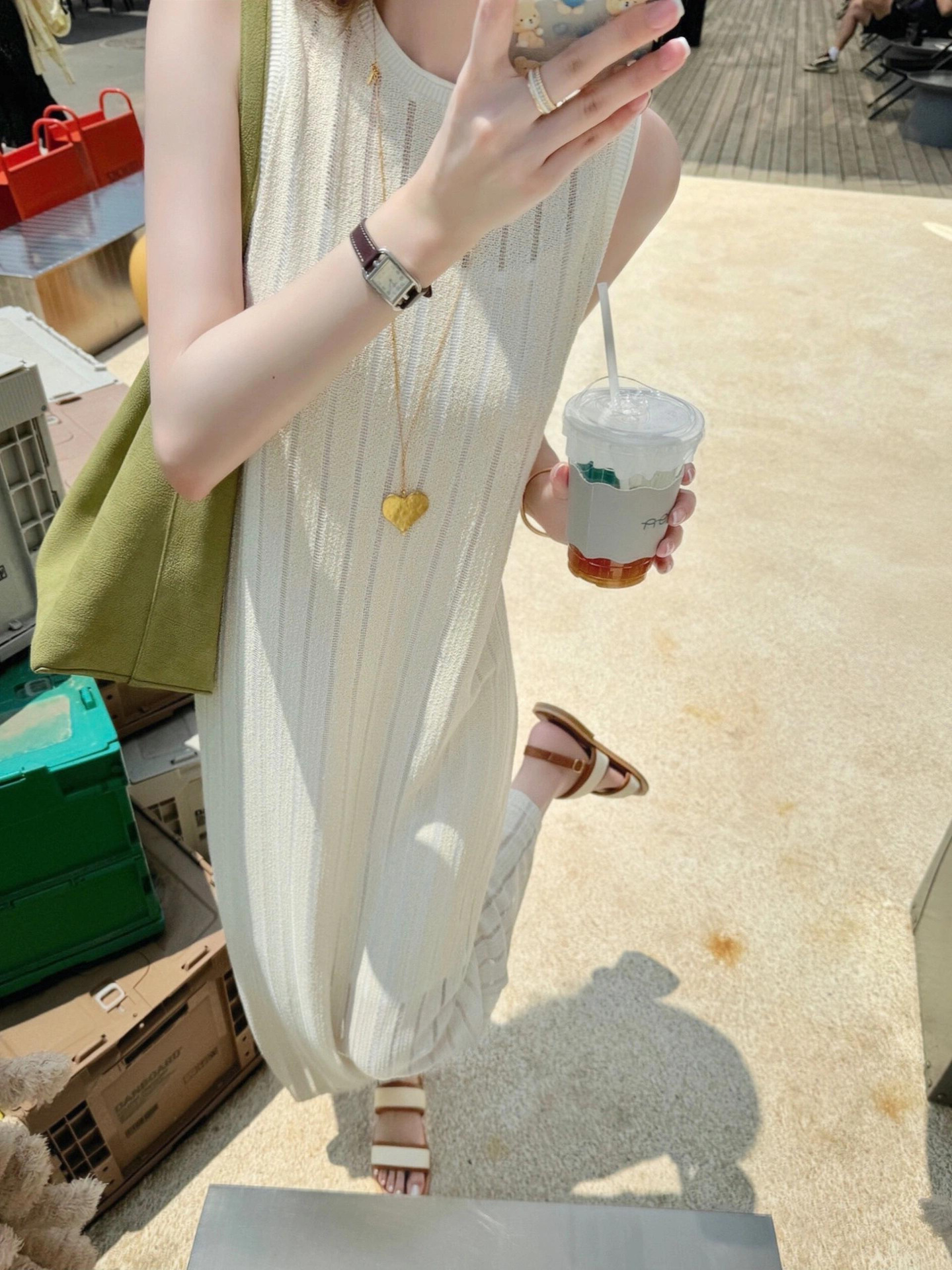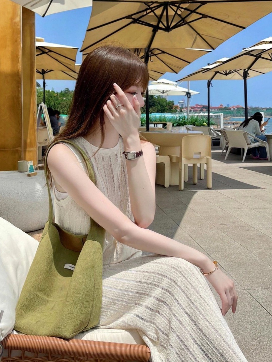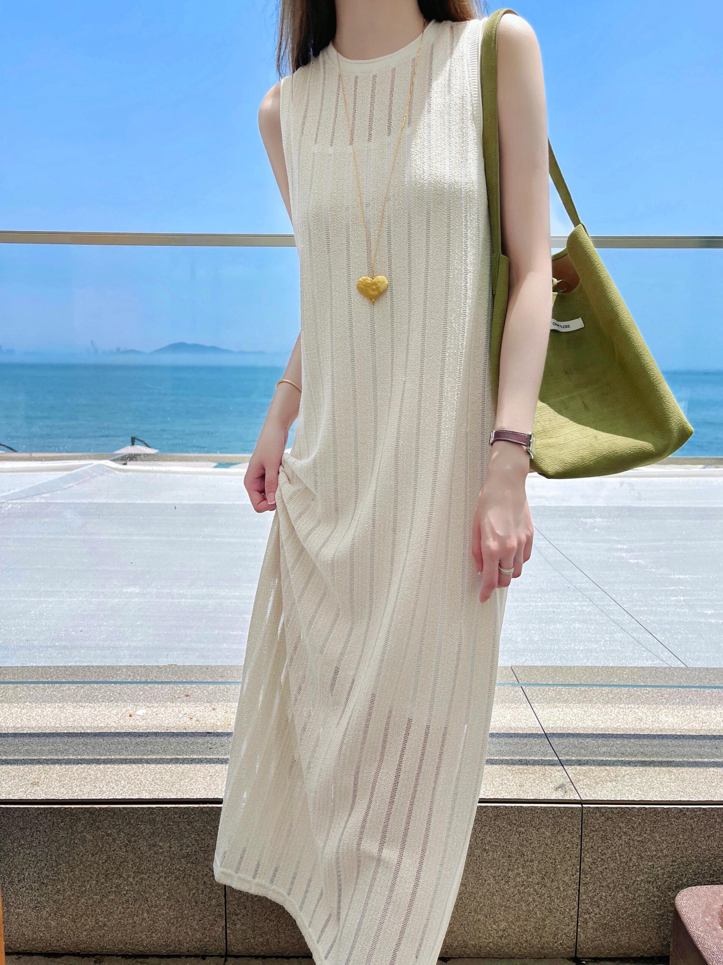 绝美长裙气质高级感小众设计师度假风长款显瘦无袖白色针织连衣裙