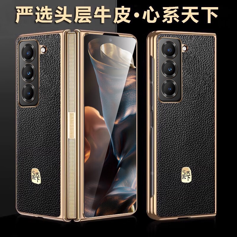 三星W25折叠屏鎏金真皮分体款手机壳Fold6带心系天下金属标套