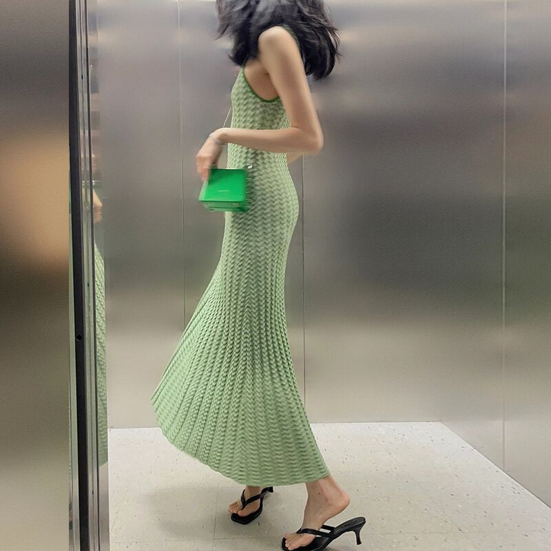 长裙梨形身材法式高级感长款小香风针织吊带连衣裙新款女夏季