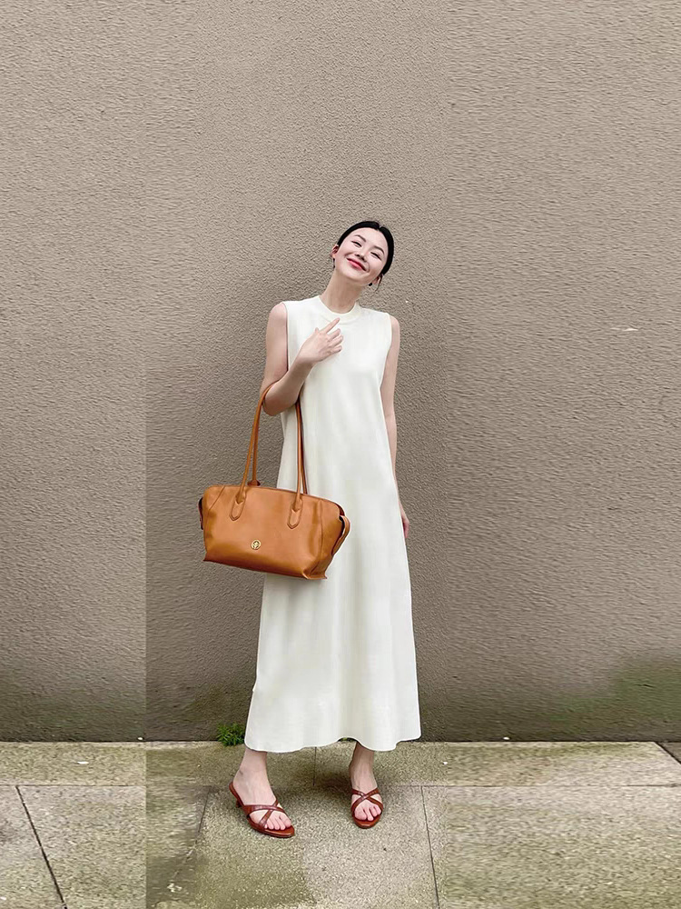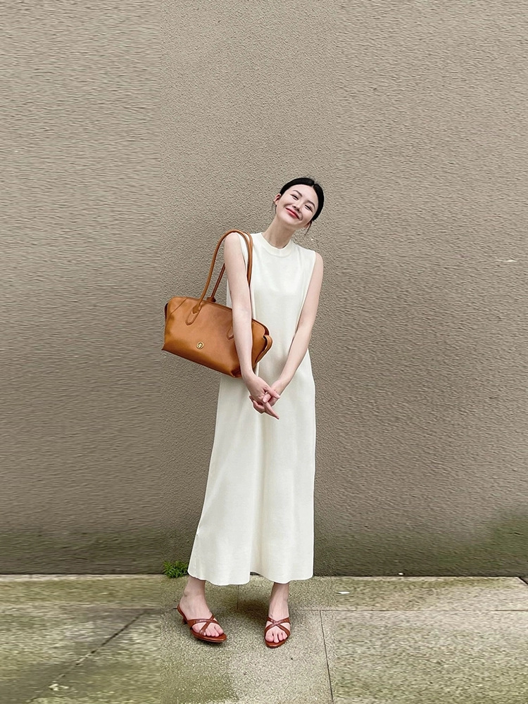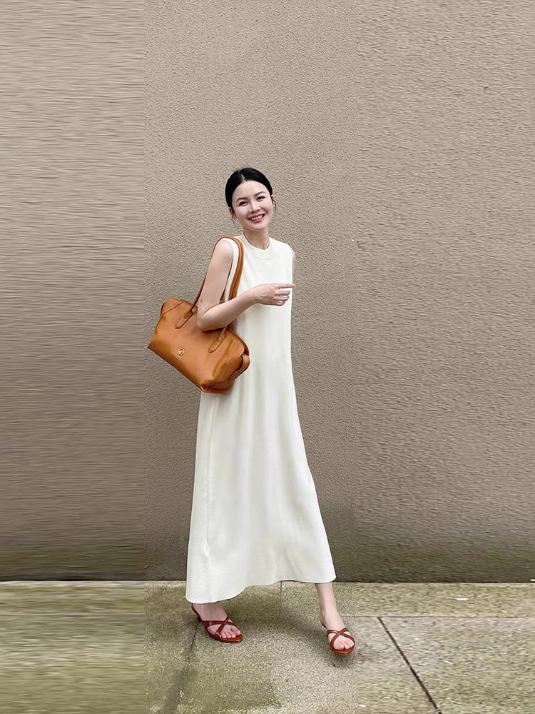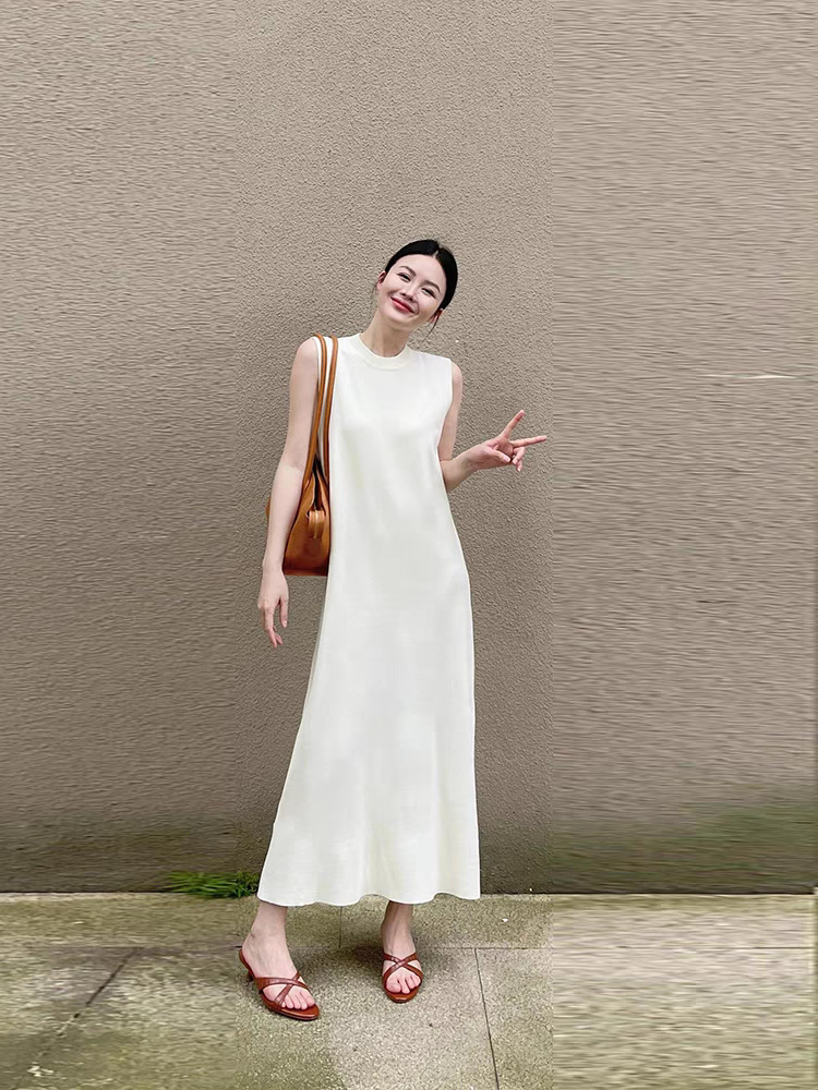 法式白色背心连衣裙夏季新款设计感小众气质高级感无袖长裙子