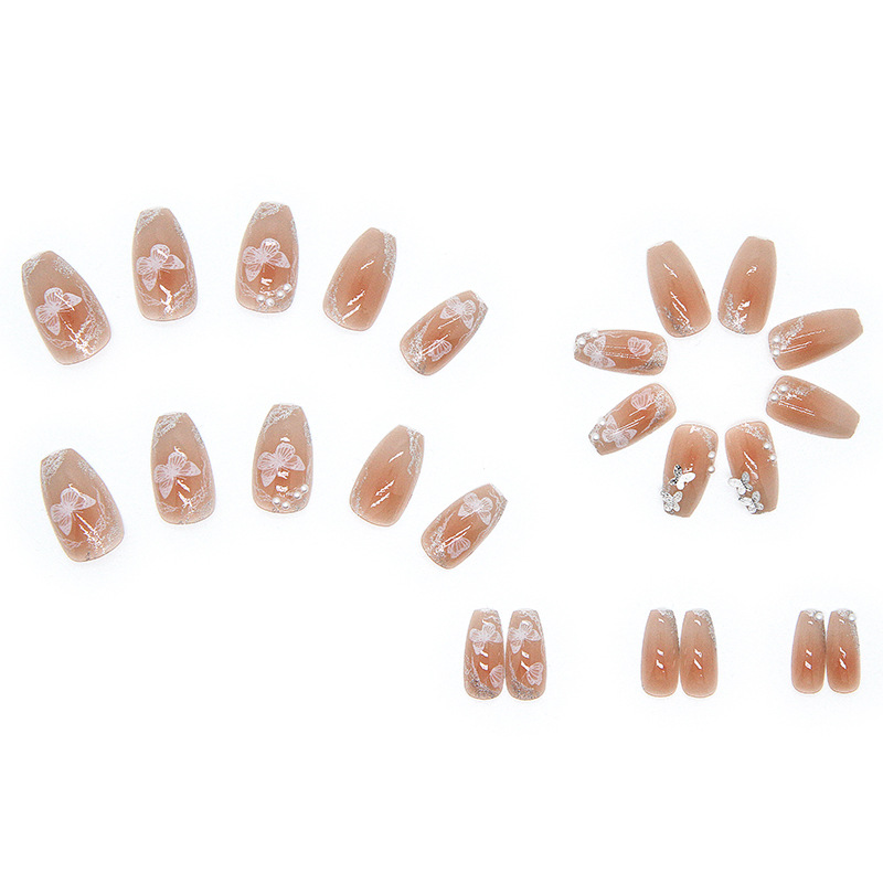 穿戴甲批发钻款立体蝴蝶珍珠显白美甲贴片成品批发穿戴式美甲甲片