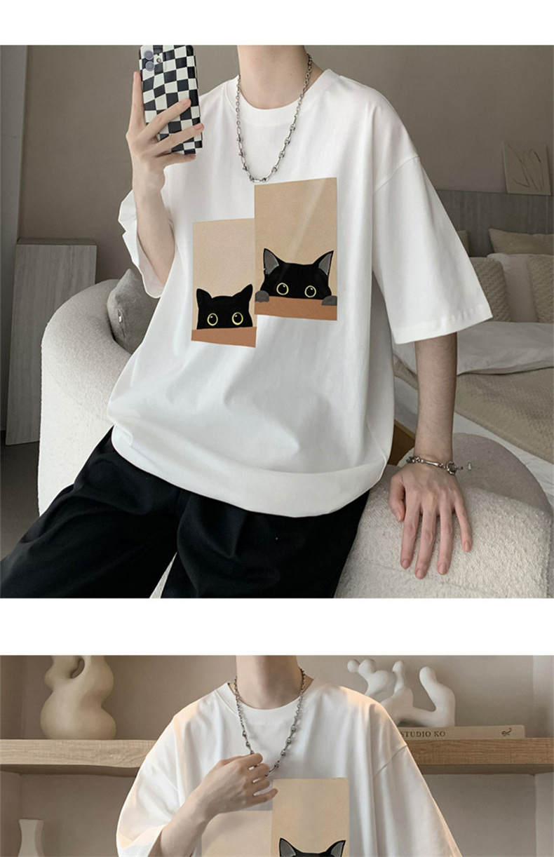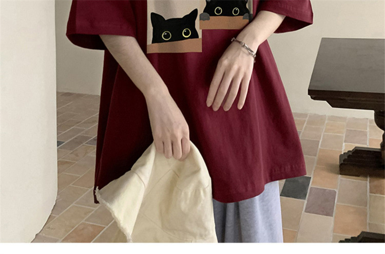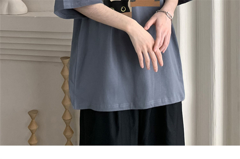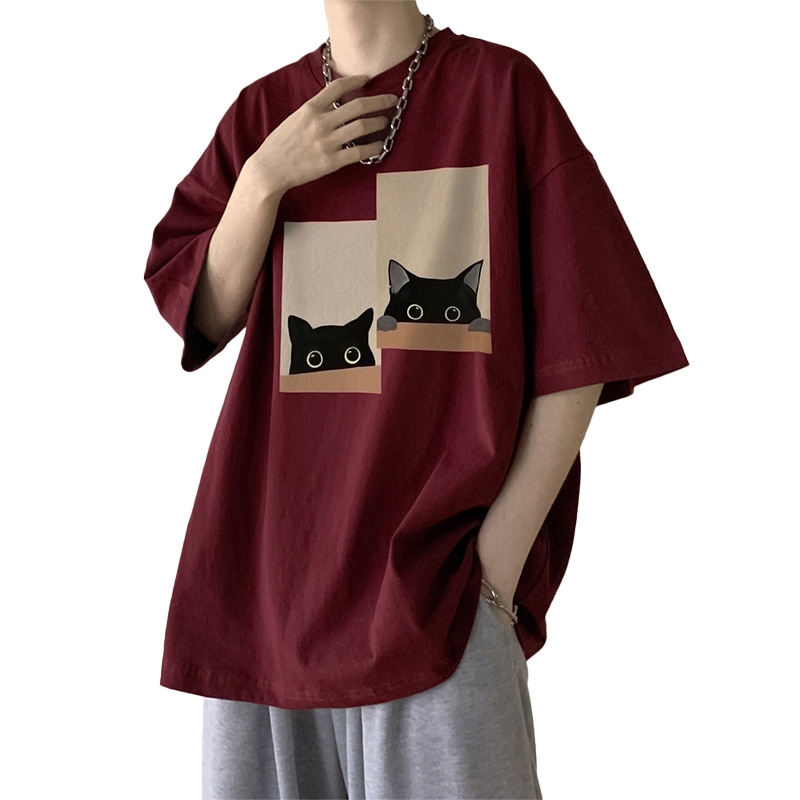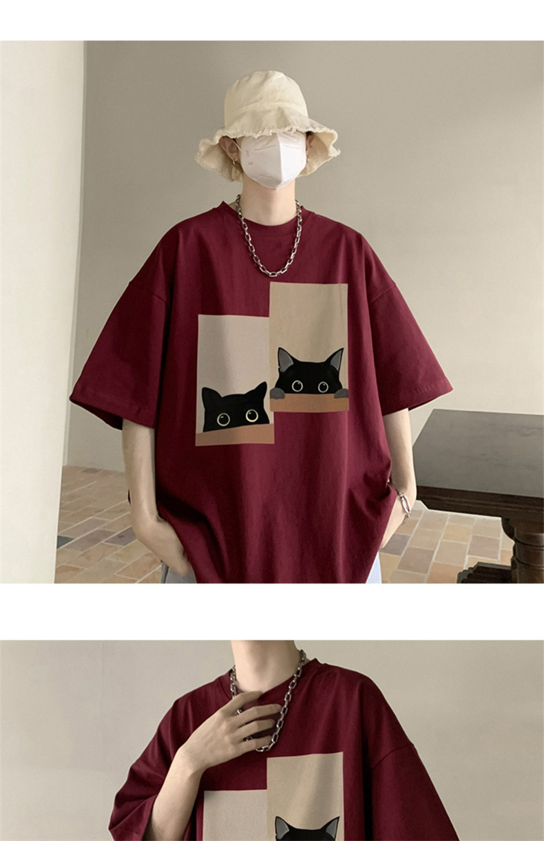 酒红色廓形短袖T恤男生夏季男士情侣衣服新款青少年宽松半袖