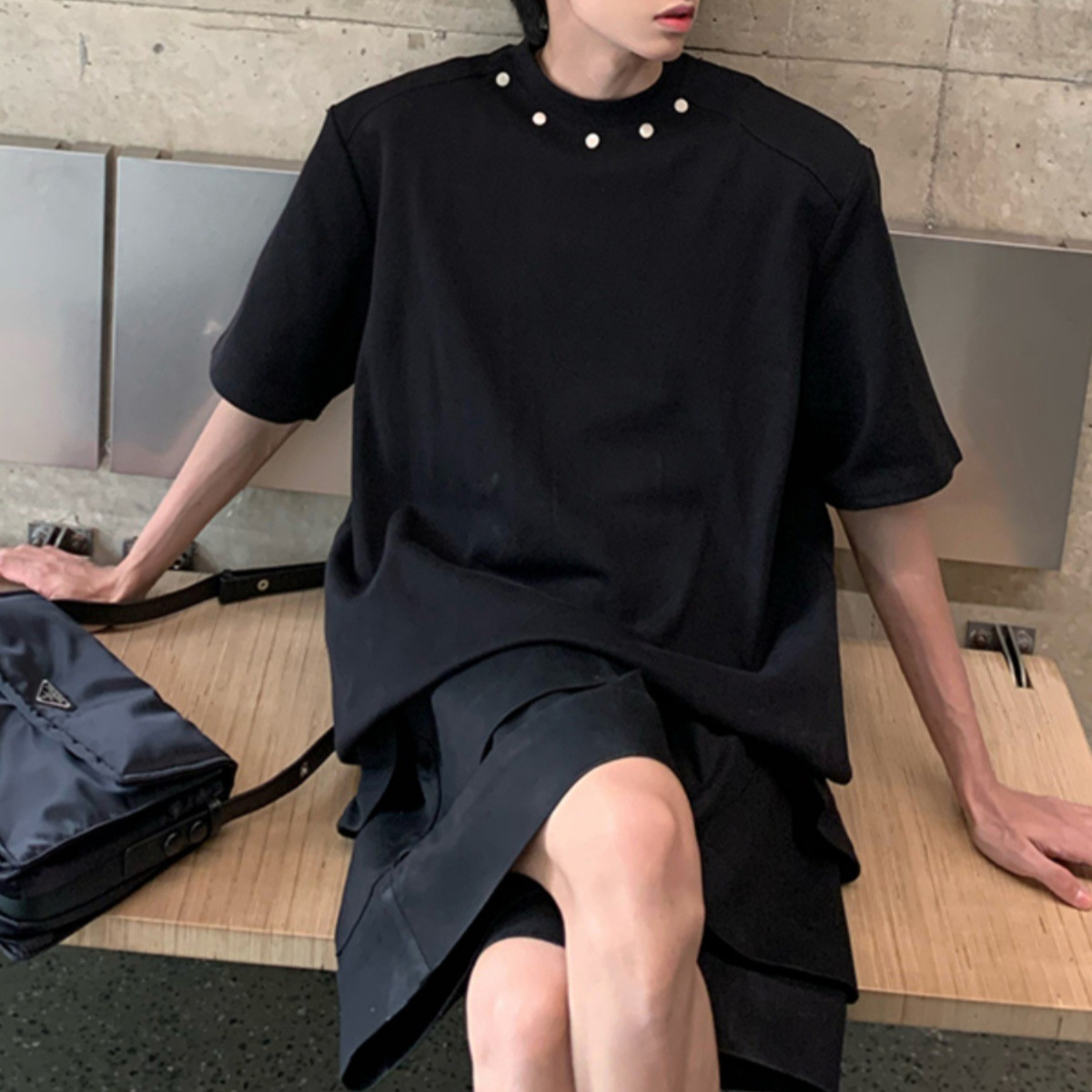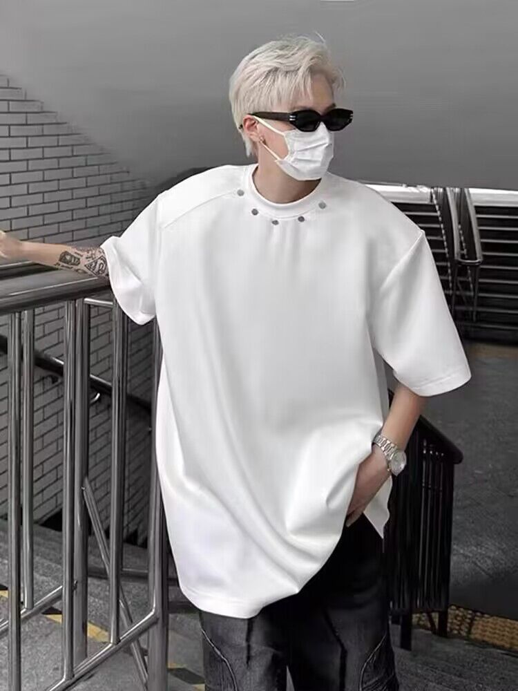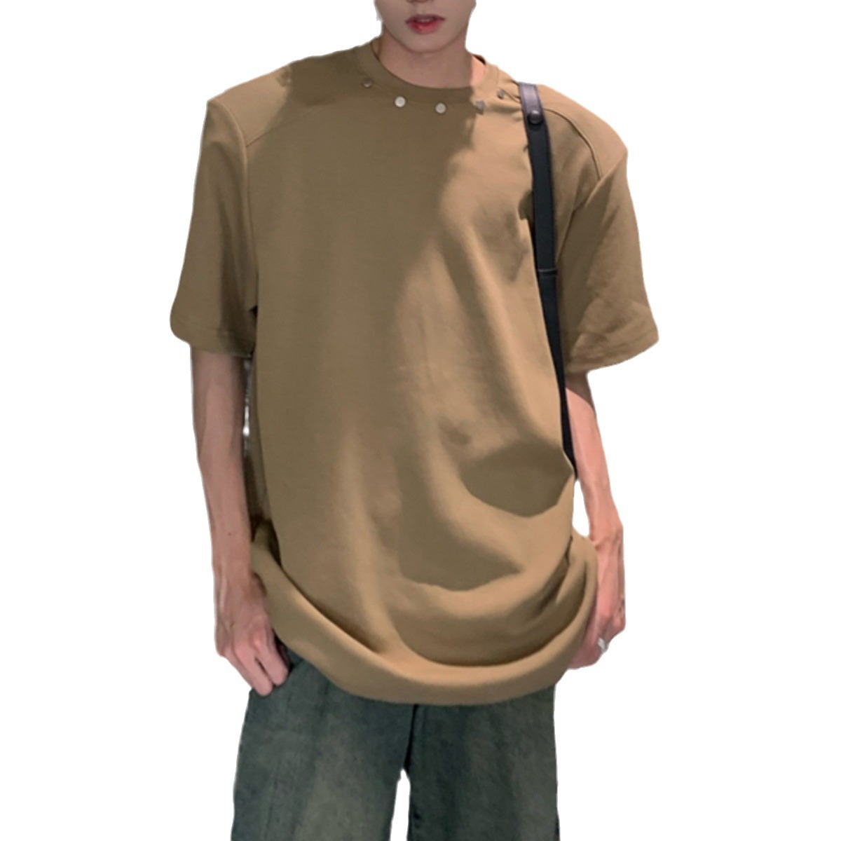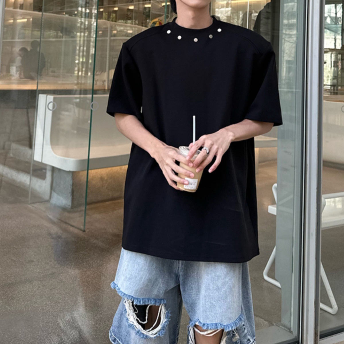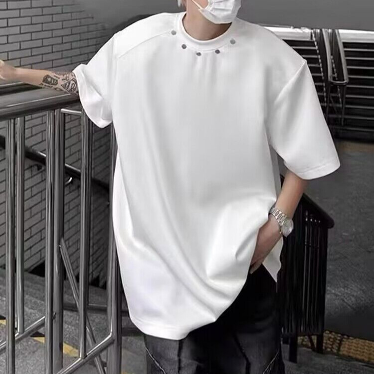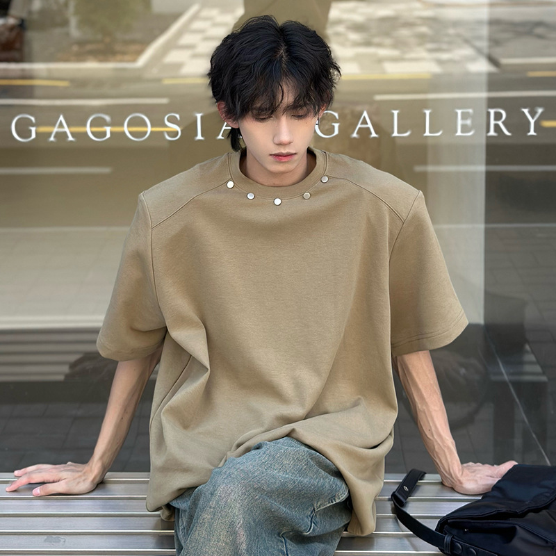 潮流时尚垫肩短袖t恤男夏季新款小众设计感痞帅潮牌五分袖上衣ins