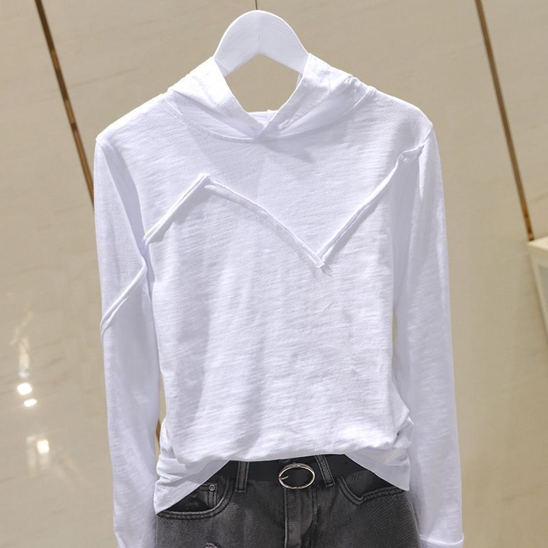 新款长袖T恤竹节棉上衣潮秋装连帽休闲纯棉宽松打底衫女百搭