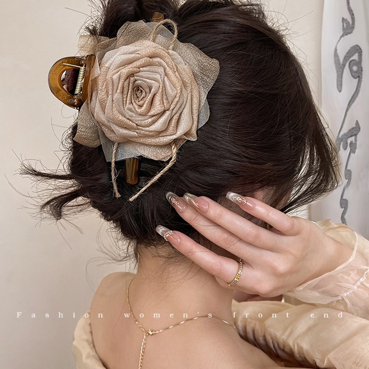 花仙子~手作款玫瑰花朵抓夹女高级感后脑勺鲨鱼夹子早春发卡头饰