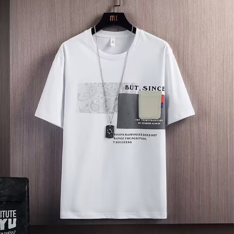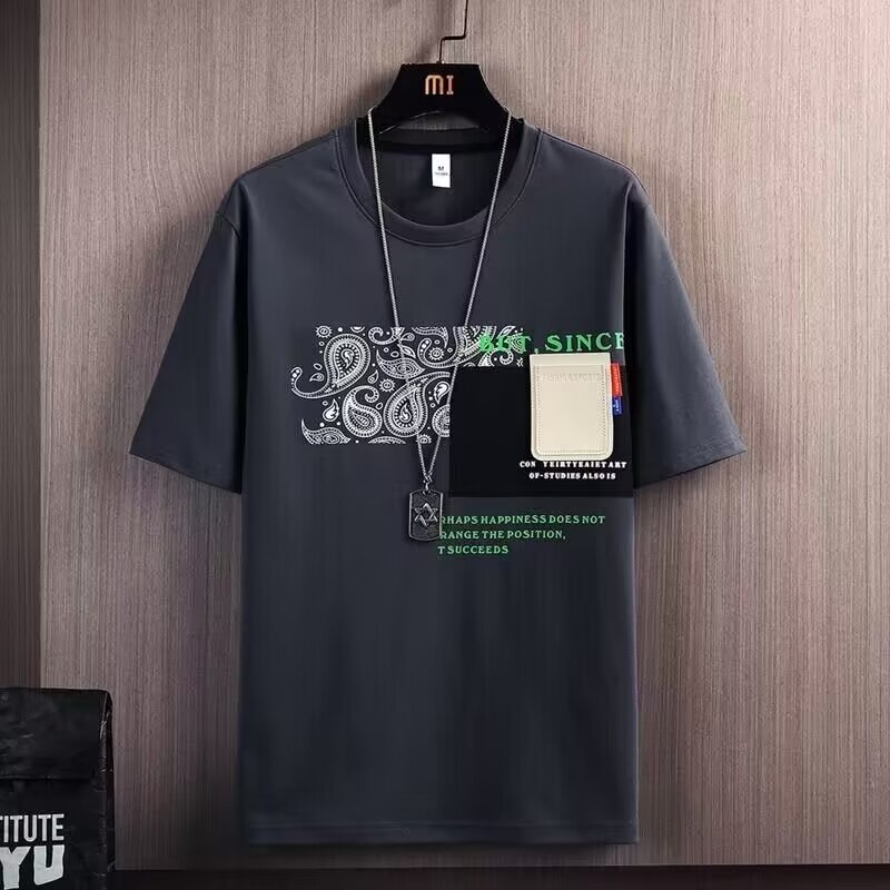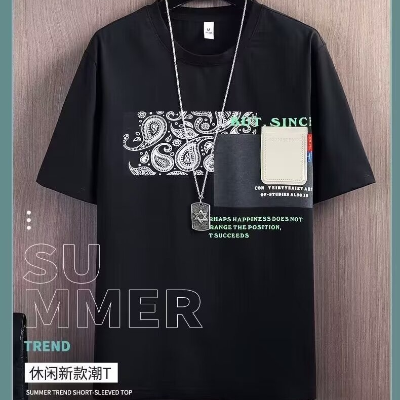 男士短袖t恤印花夏季潮牌宽松设计感半袖上衣休闲贴袋体恤夏
