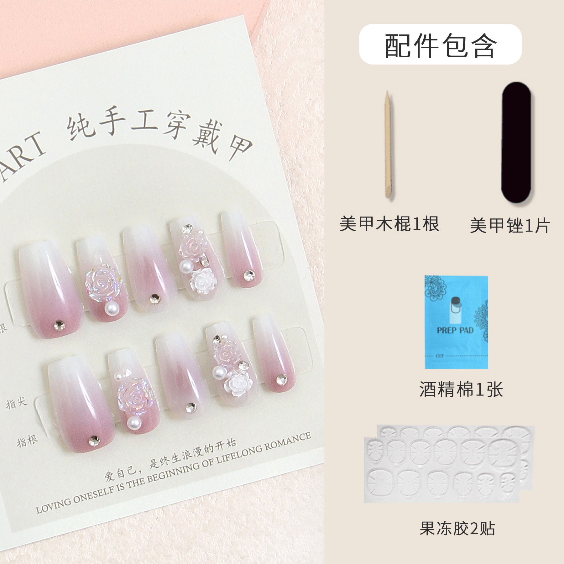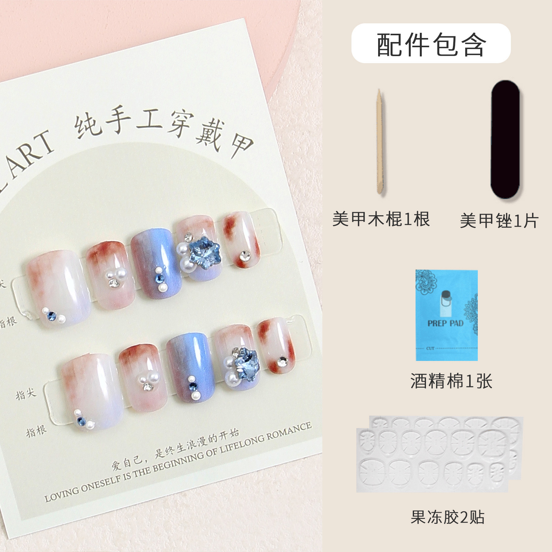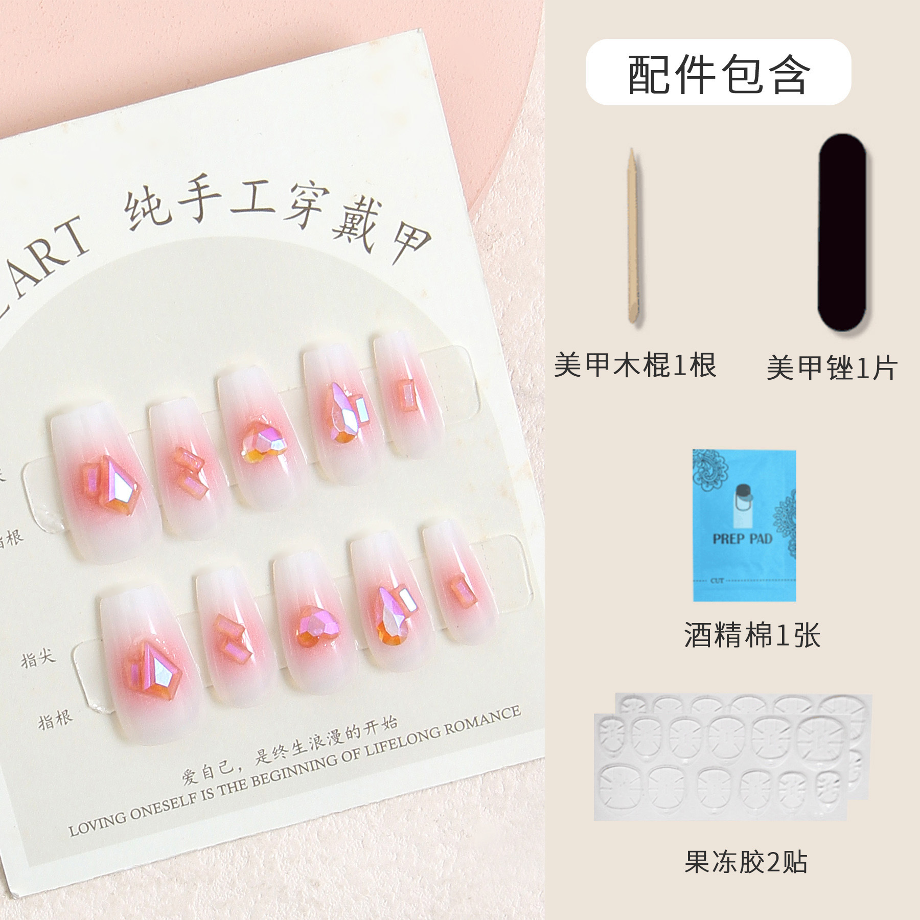 纯手工穿戴甲夏季简约清新美甲片渐变晕染腮红指甲装饰成品假指甲