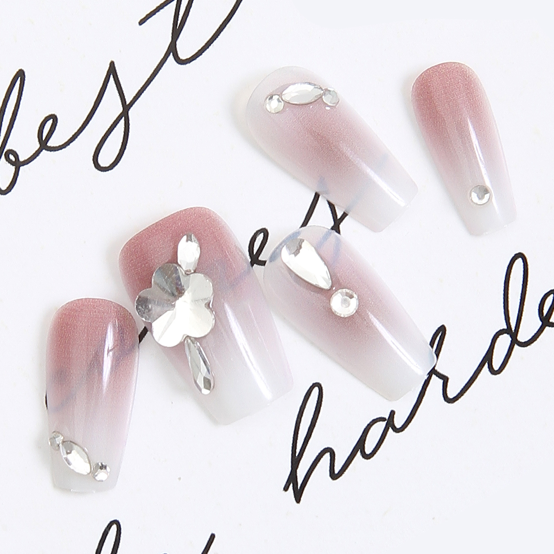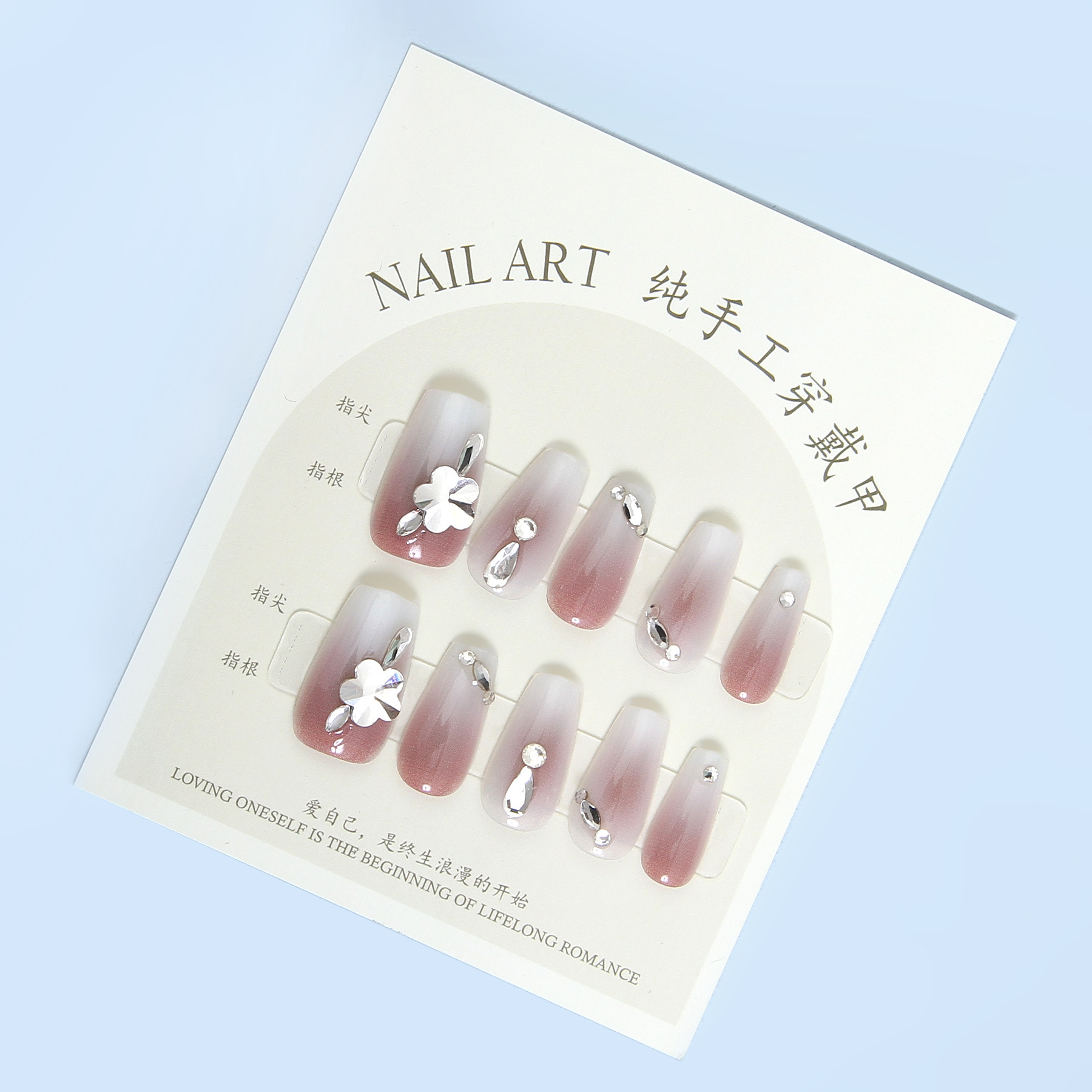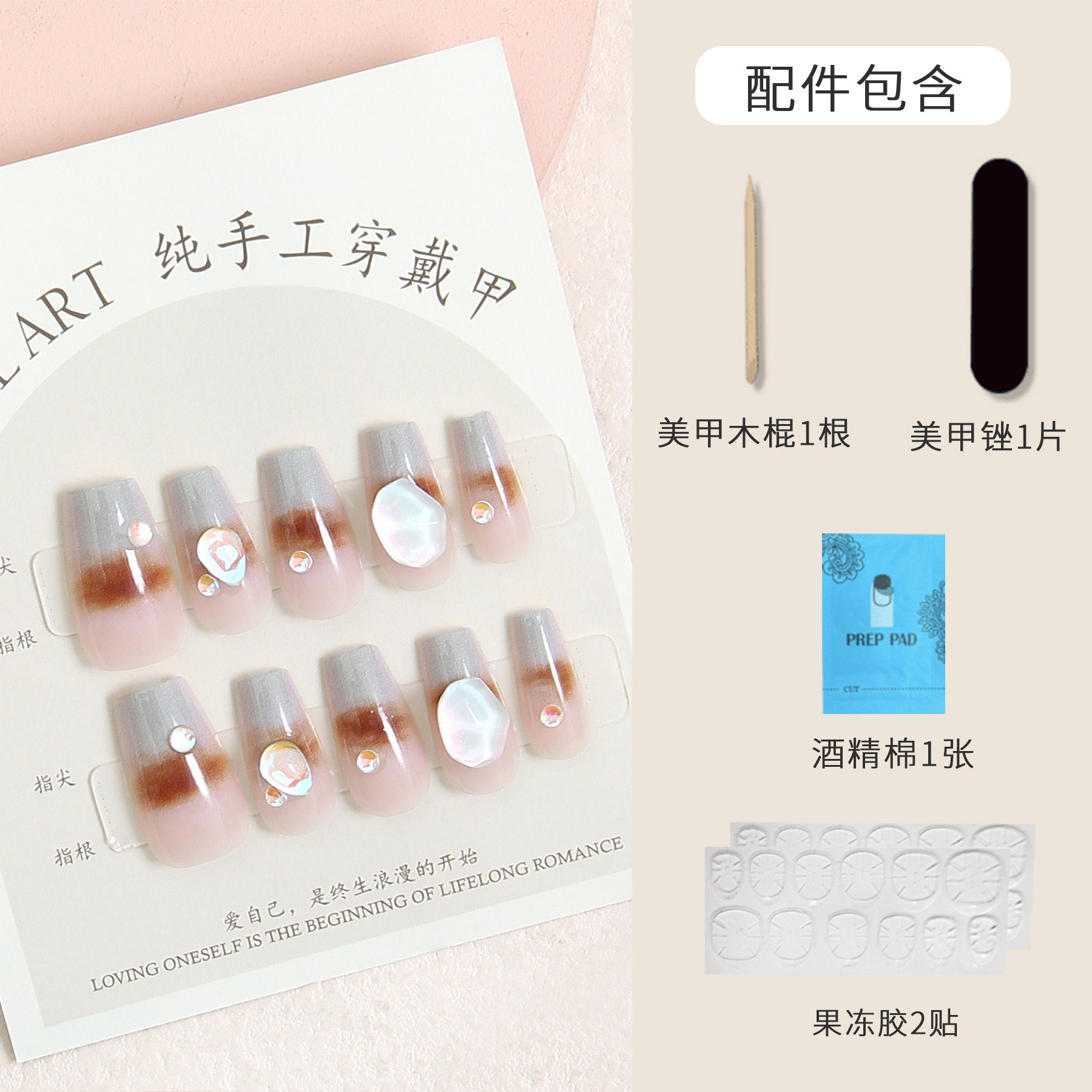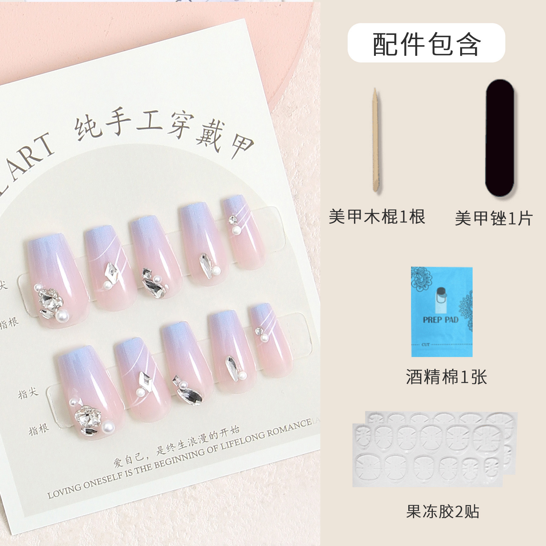 纯手工穿戴甲夏季简约清新美甲片渐变晕染腮红指甲装饰成品假指甲