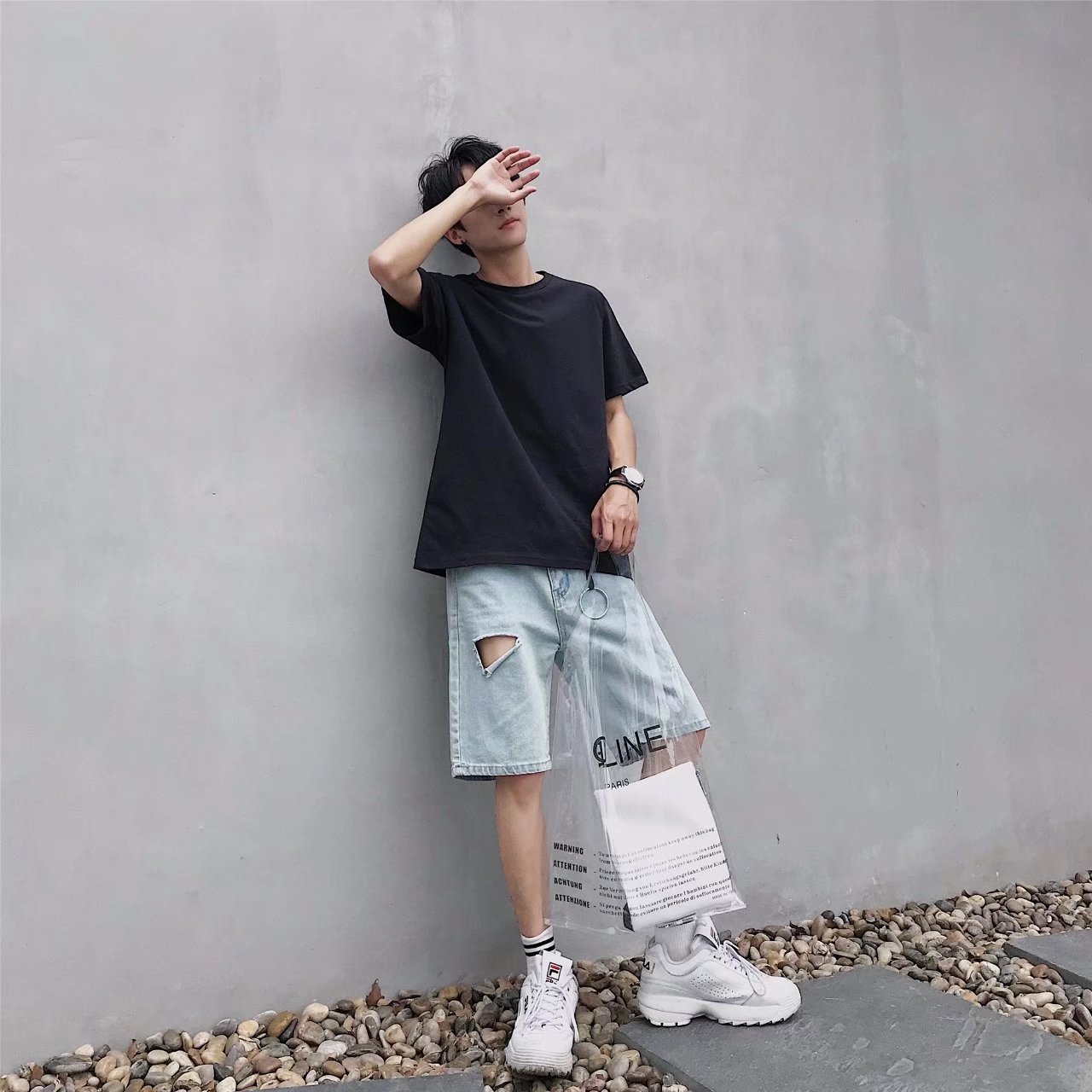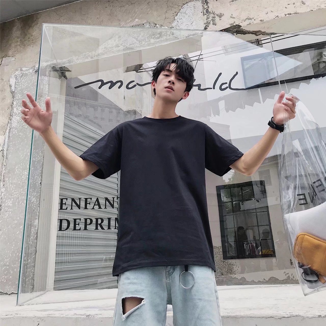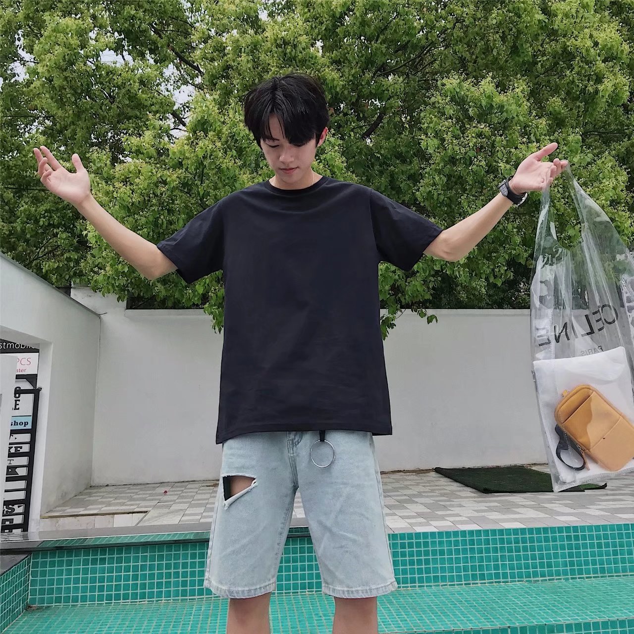 cec短袖T恤男宽松嘻哈情侣装纯色上衣韩版潮流bf五分袖体恤衫