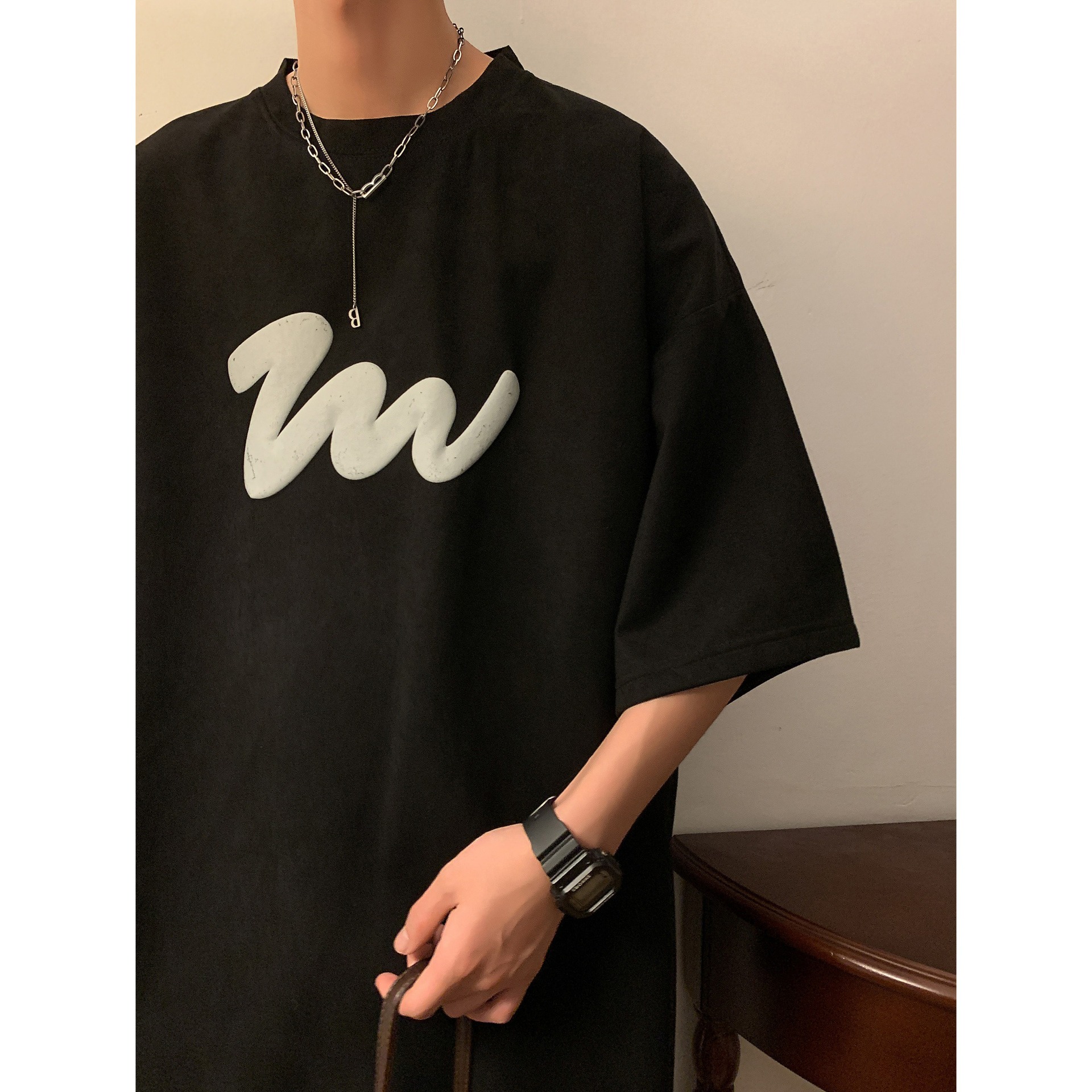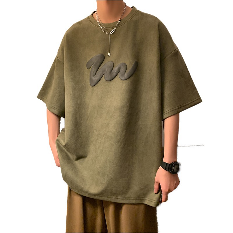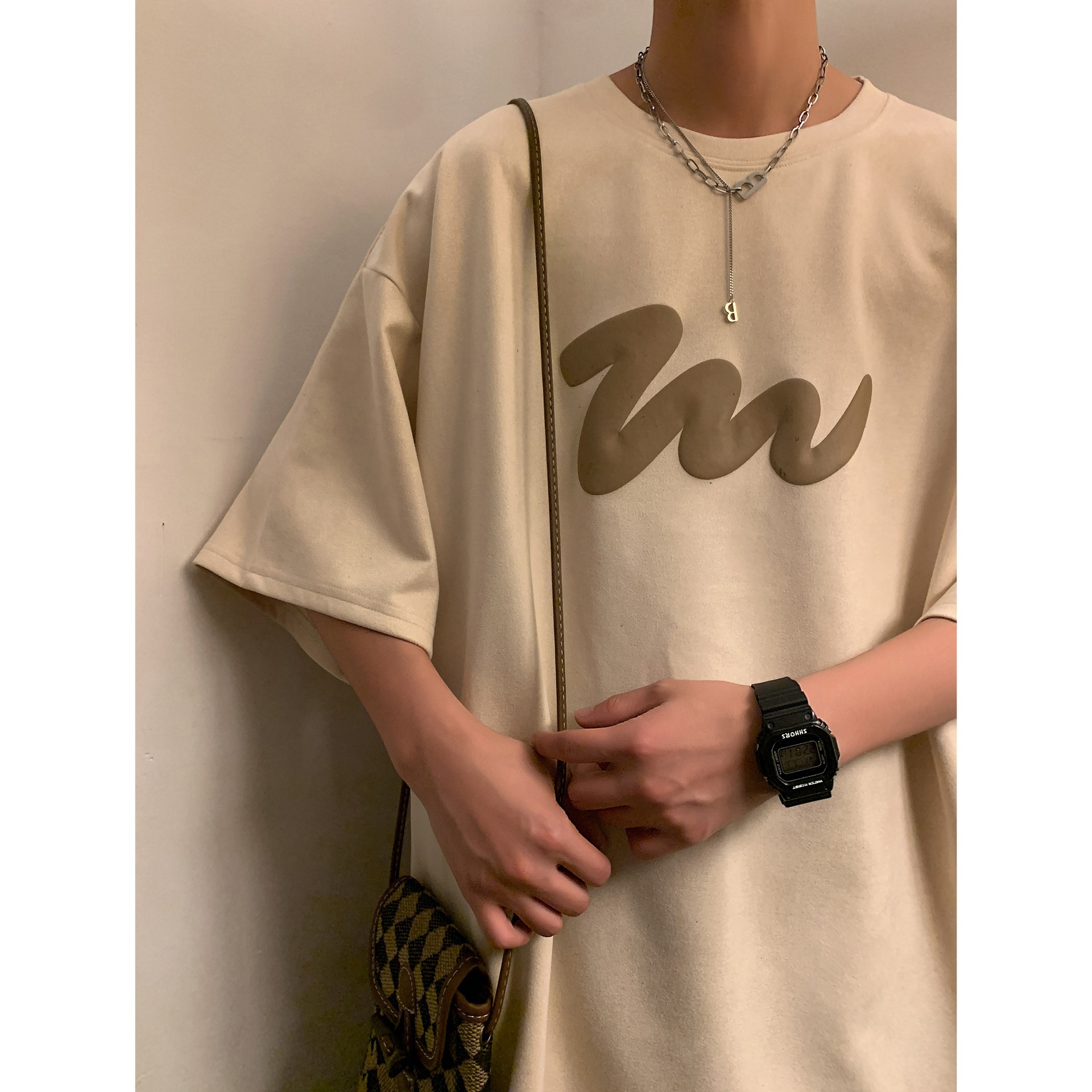 美式重磅短袖t恤男夏季新款潮牌oversize宽松潮流百搭麂皮绒半袖