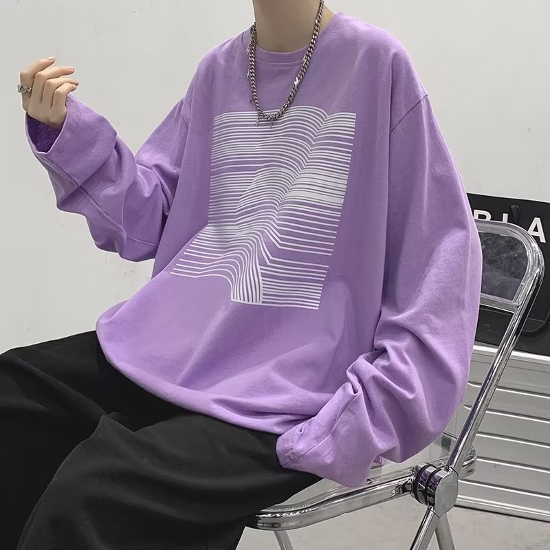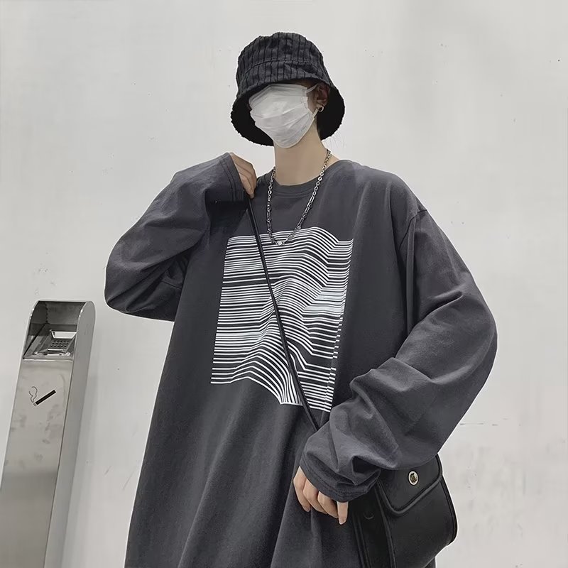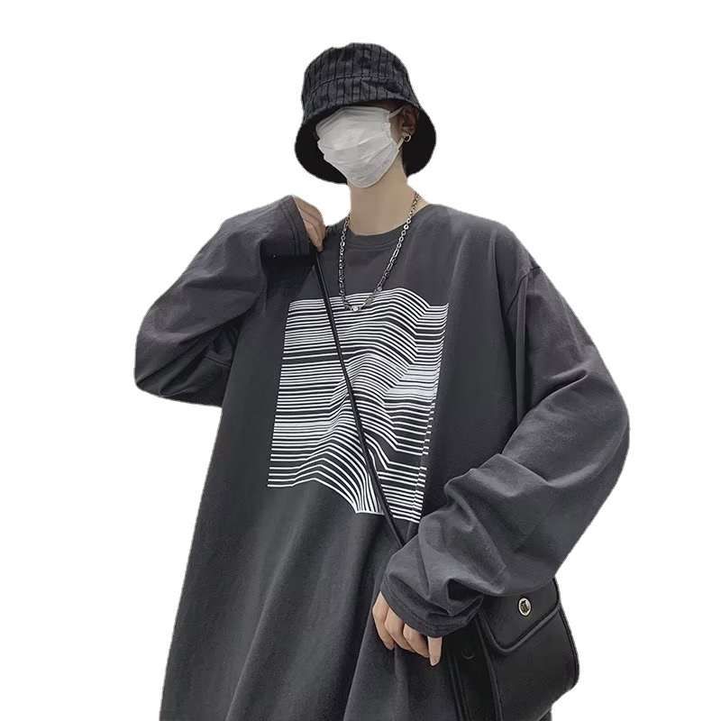 个性印花t恤男长袖ins港风嘻哈潮牌宽松上衣春秋季内搭打底体恤衫