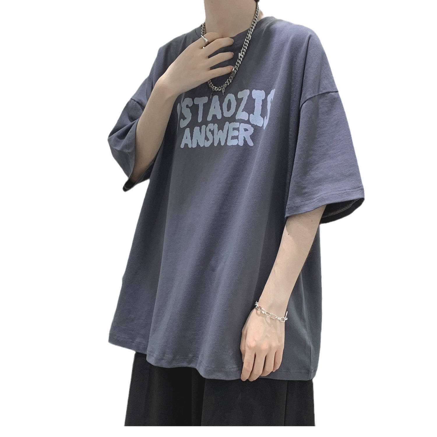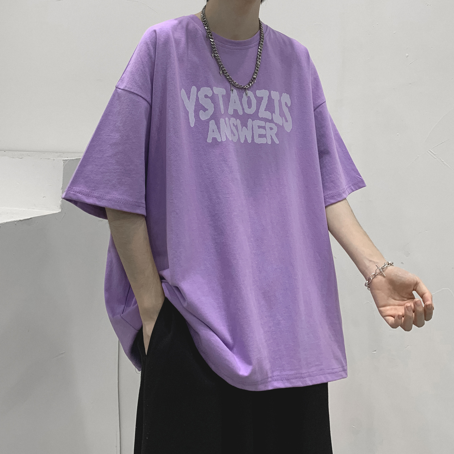 T恤男夏潮流情侣装五分袖体恤chic复古港风百搭短袖白色半袖上衣