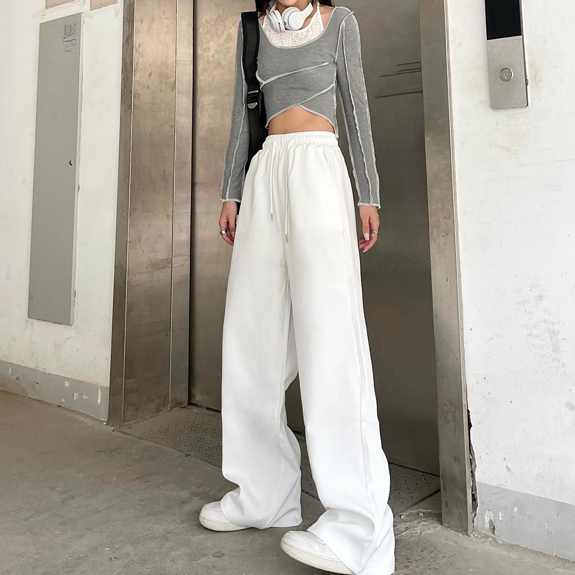 实拍大码休闲拖地运动裤子女秋装新款直筒高腰显瘦宽松阔腿裤