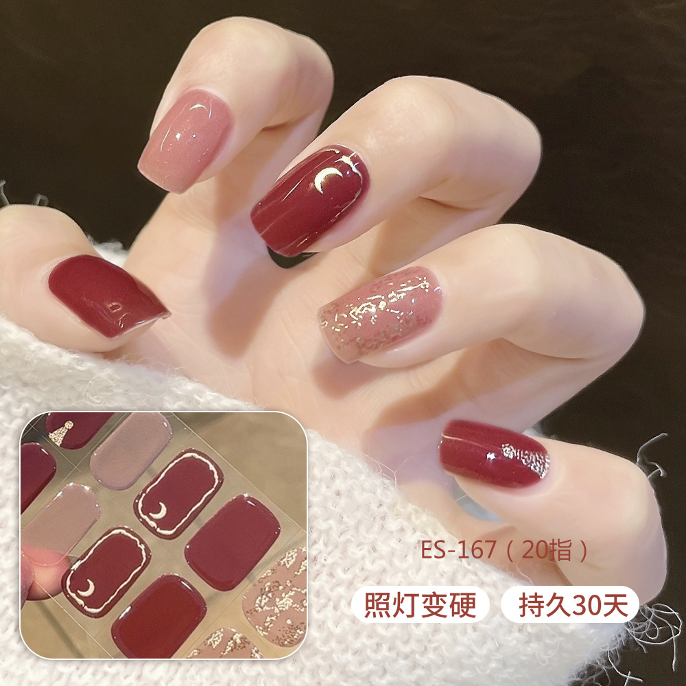 【ES167】20指半固化凝胶uv半烤美甲贴指甲贴片照灯变硬