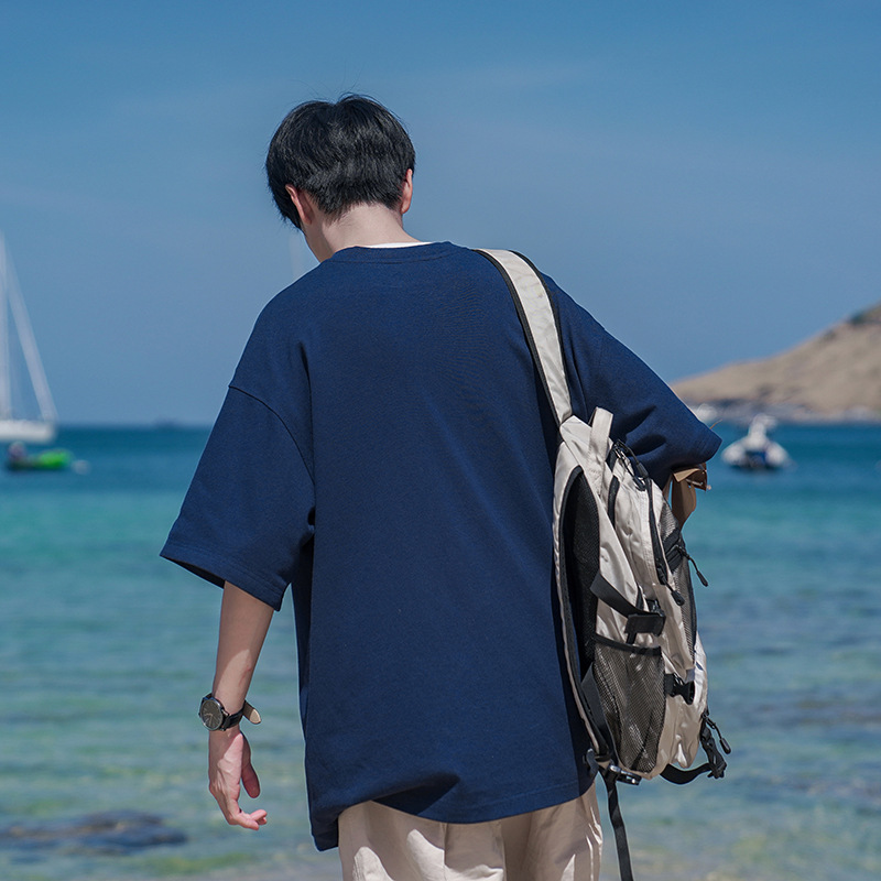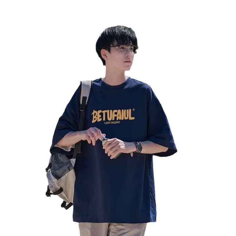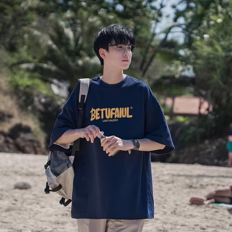 藏青色重磅t恤男棉质 夏季美式潮牌印花短袖体恤百搭潮流半袖上衣