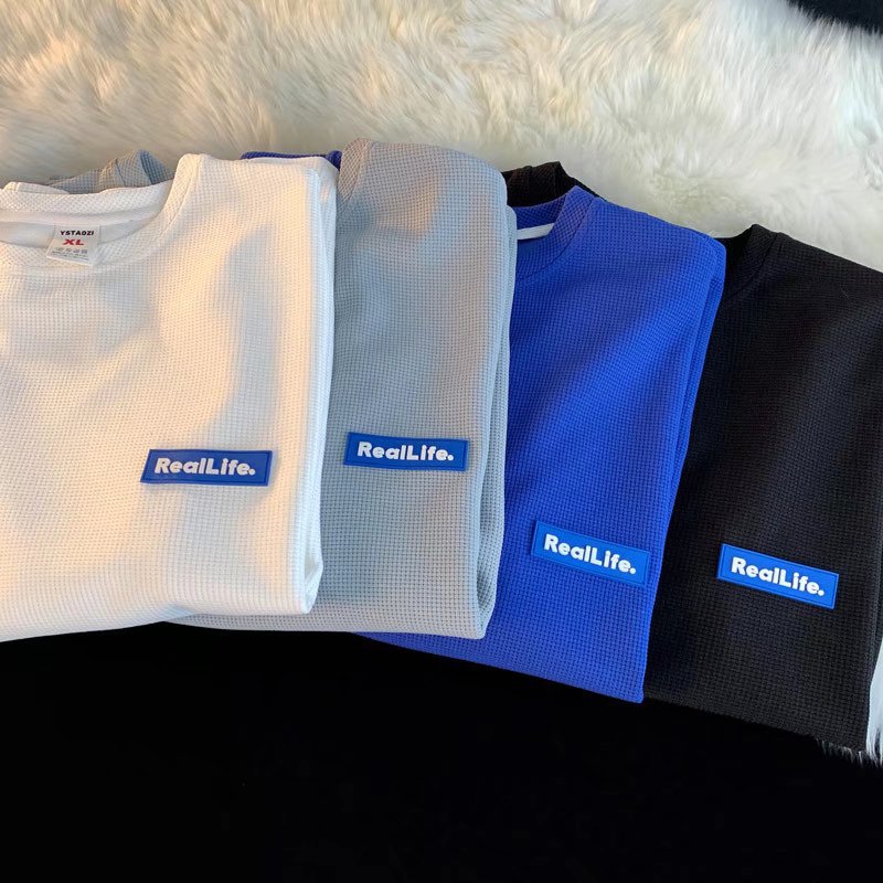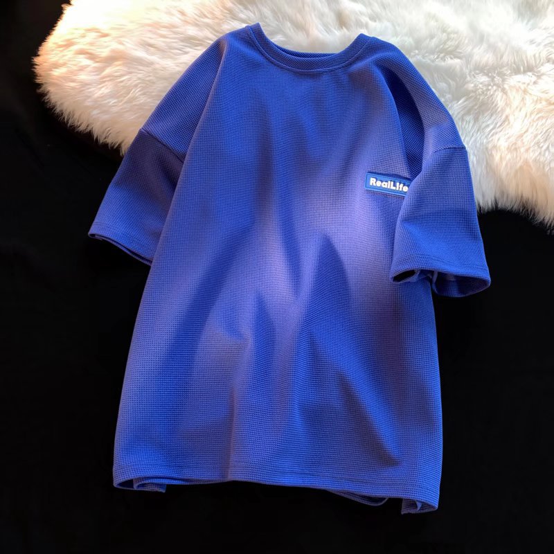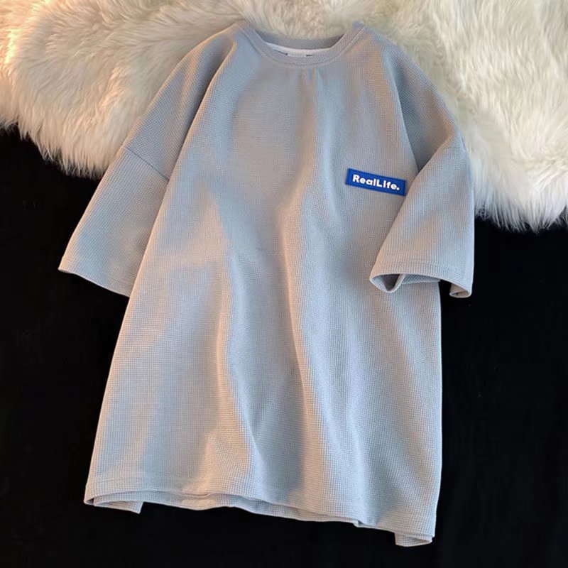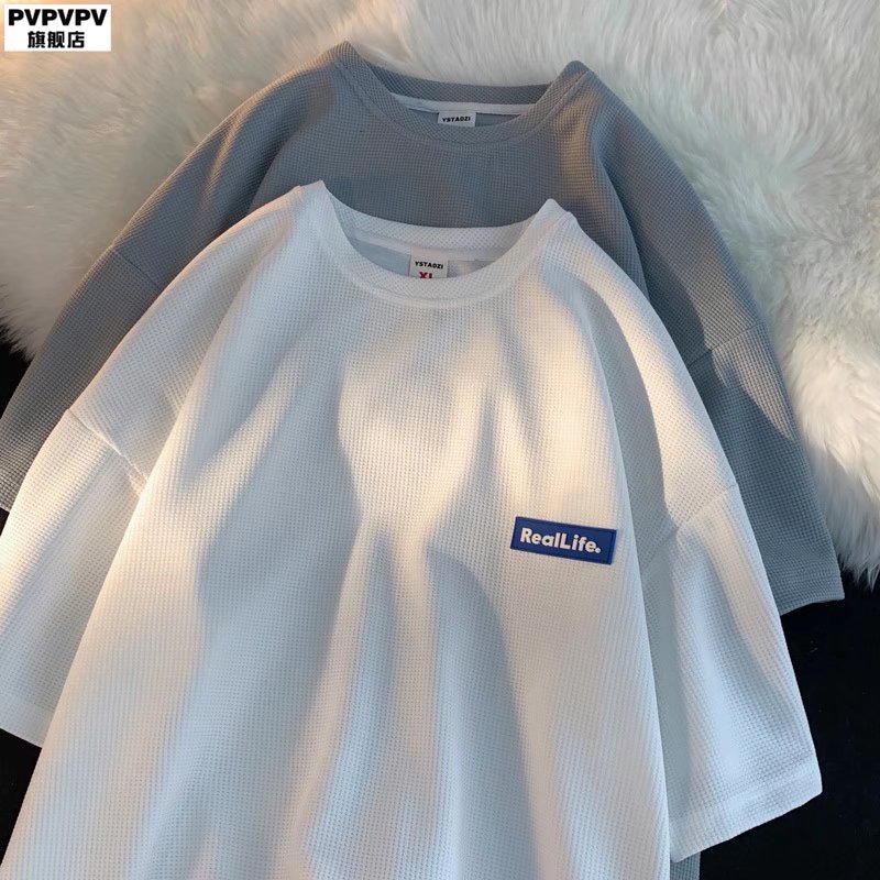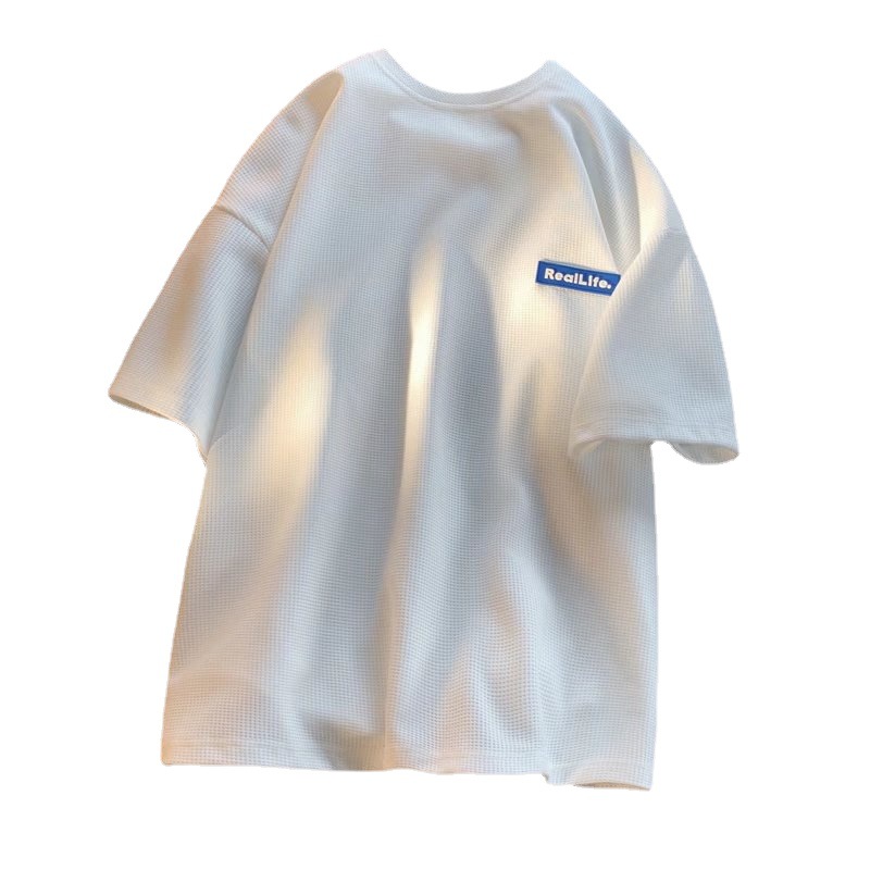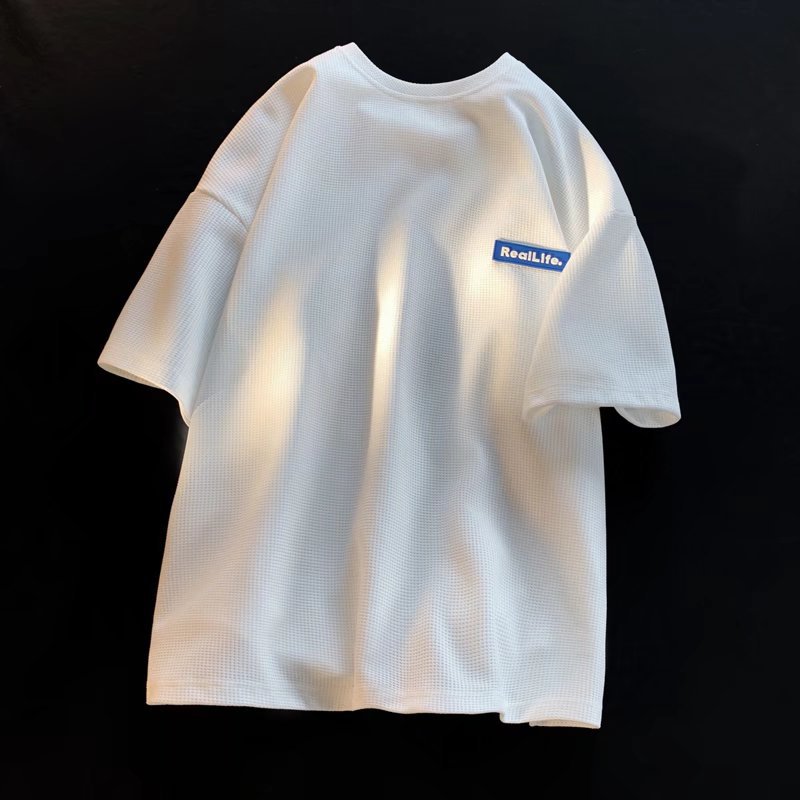 华夫格短袖t恤男生简约宽松oversize半袖ins潮牌圆领上衣体恤跨境