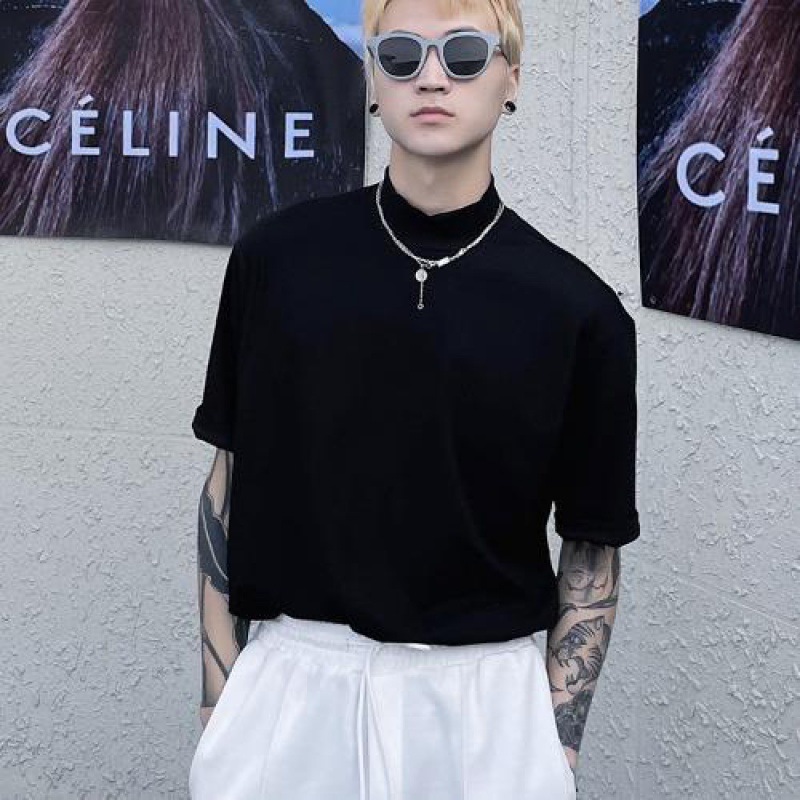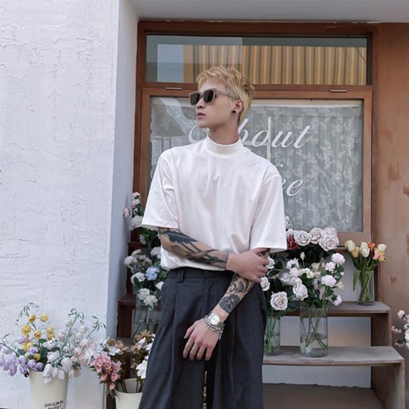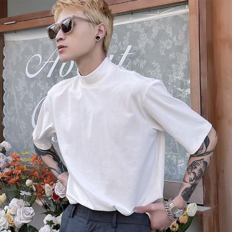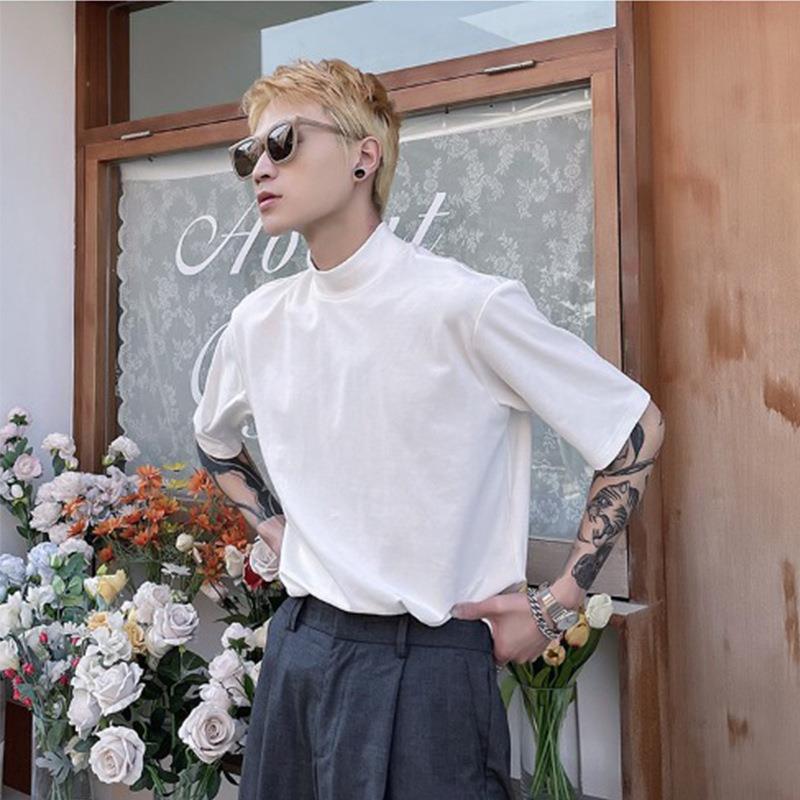半高领半袖打底衫潮流帅气百搭上衣夏季短袖T恤男ins韩版简约休闲