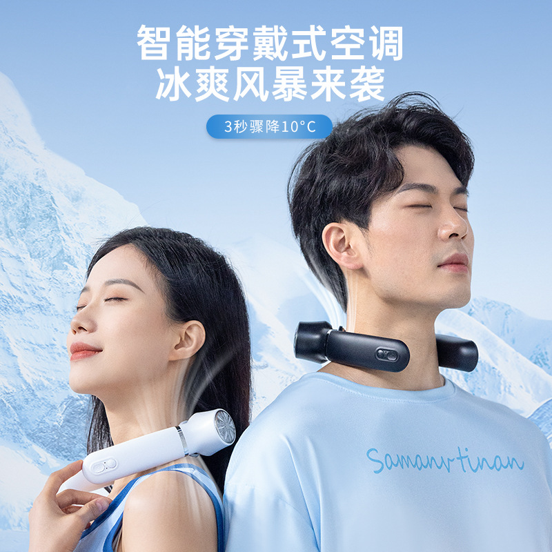 新款跨境挂脖小风扇 涡轮usb懒人户外露营迷你便携式挂脖制冷风扇