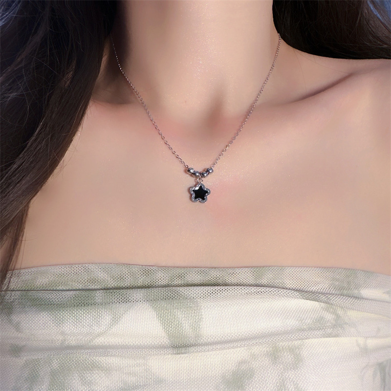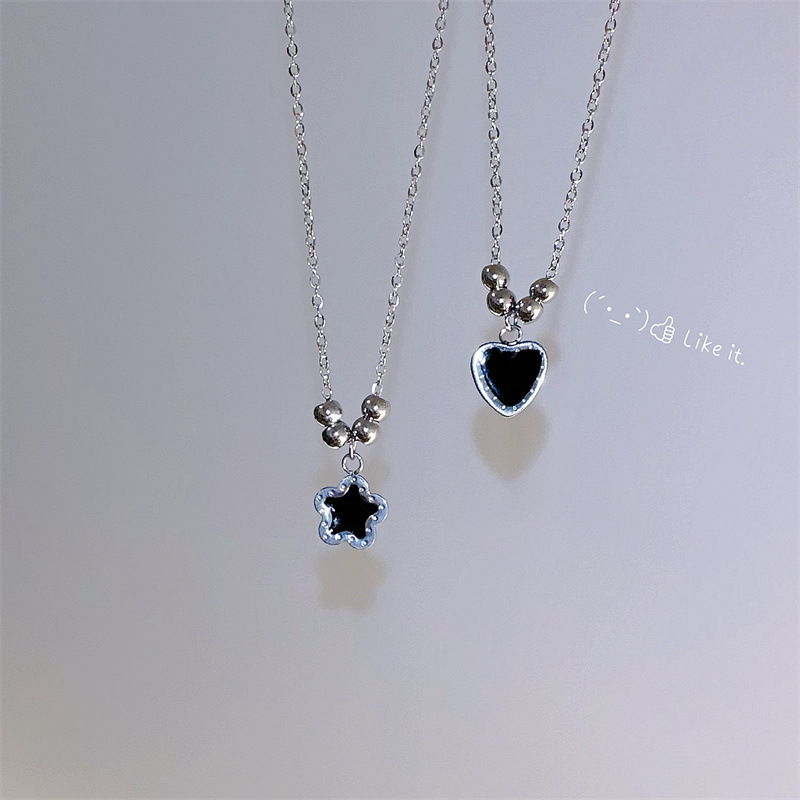 简约气质串珠钛钢滴油五角星吊坠项链女百搭甜美不掉爱心色锁骨链