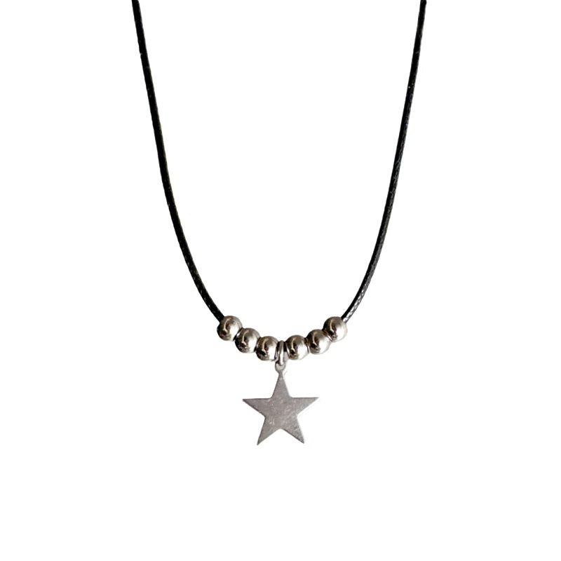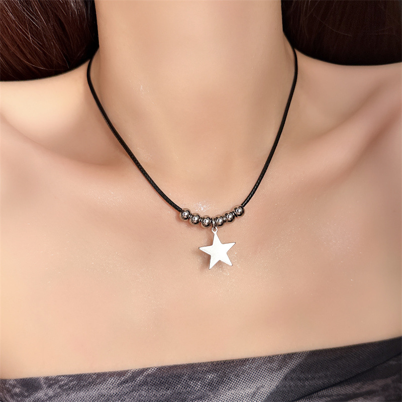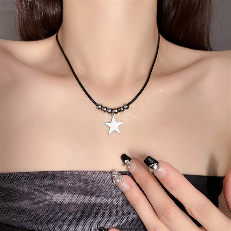 夏季欧美黑皮绳串珠五角星钛钢饰品项链女小众不掉色多巴胺锁骨链