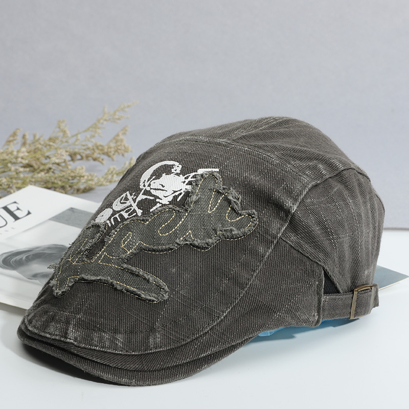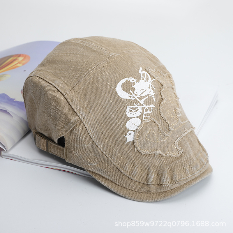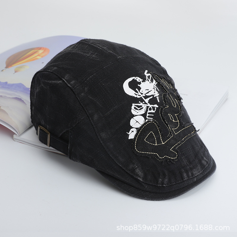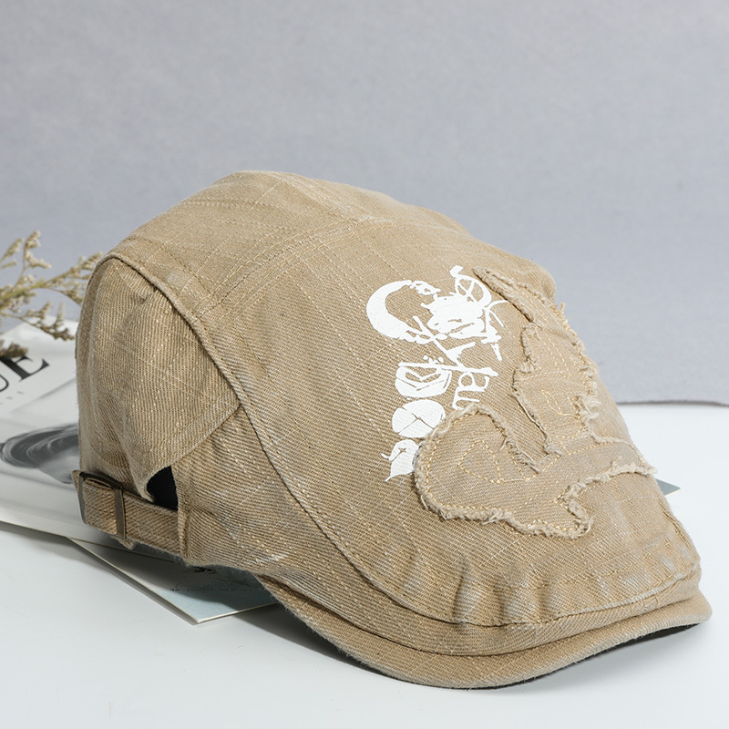 休闲贝雷帽男女士 棉布时尚贴布印鸭舌帽男遮阳帽前进帽子