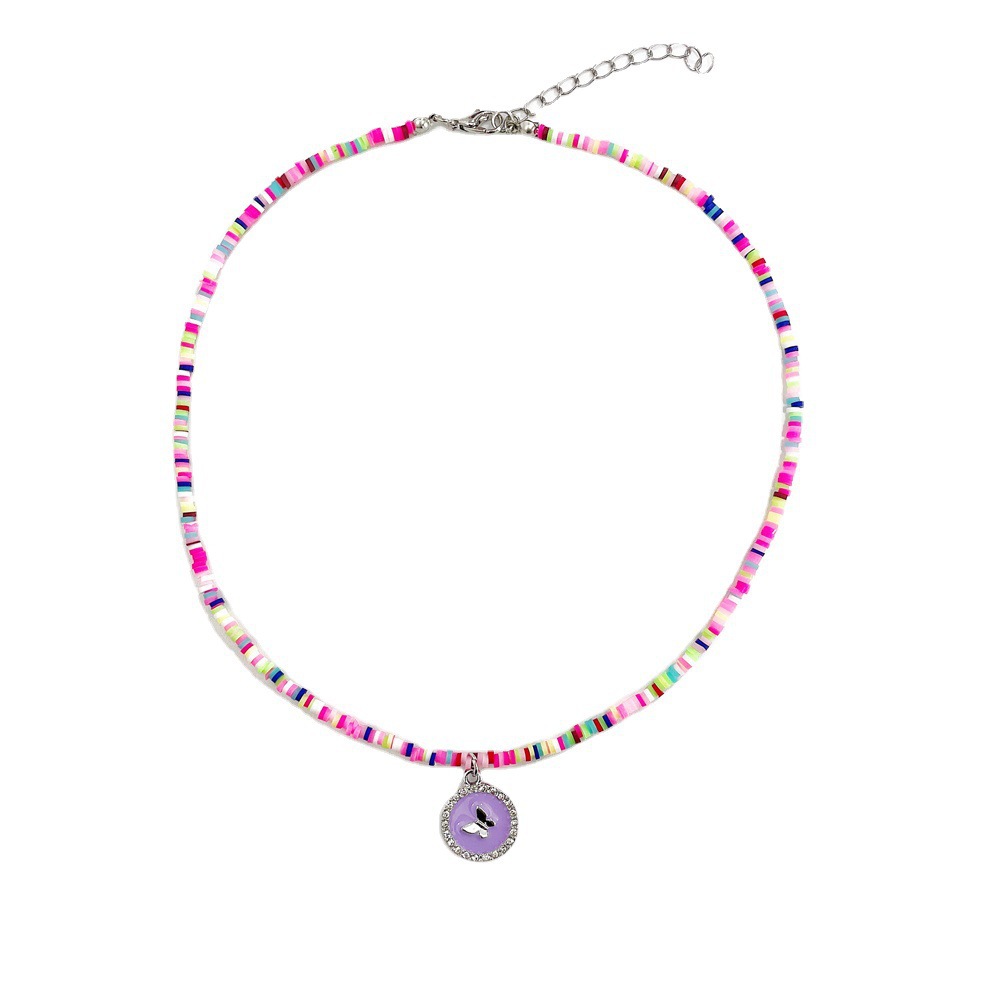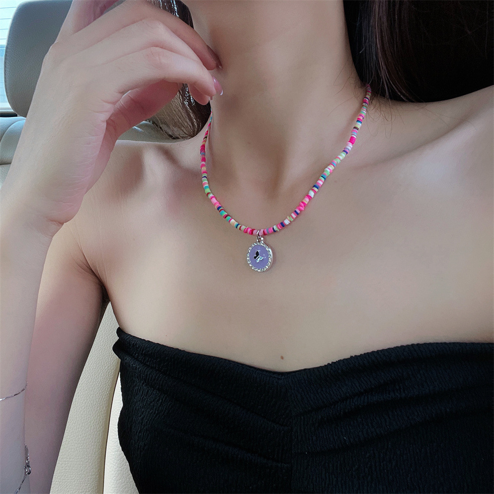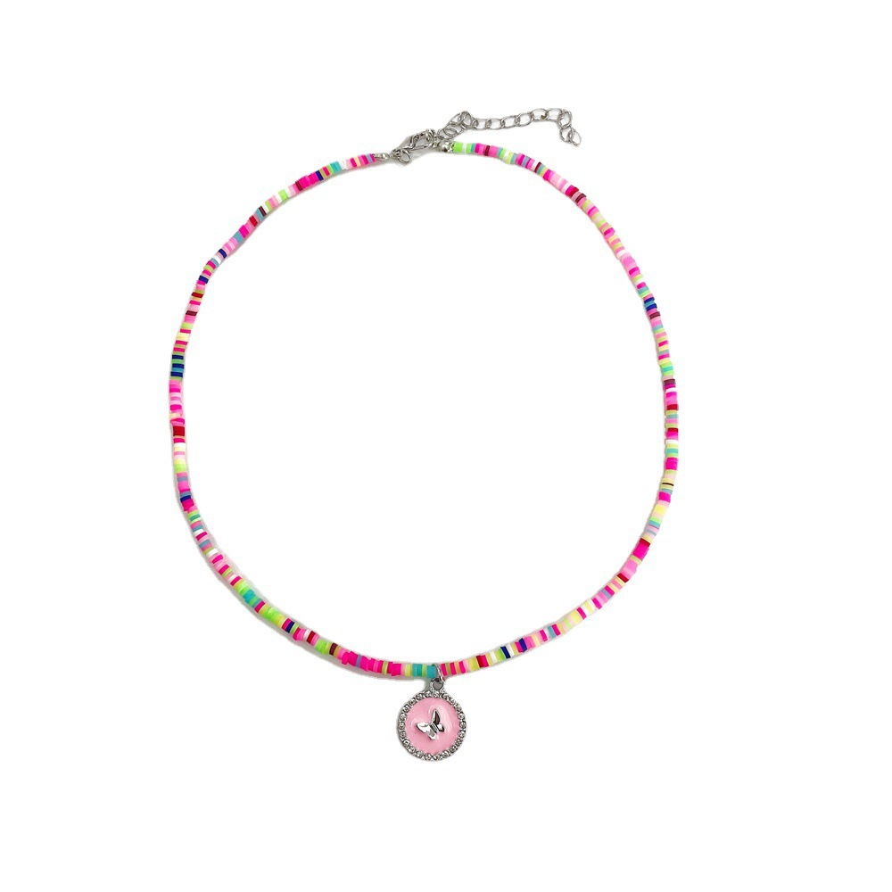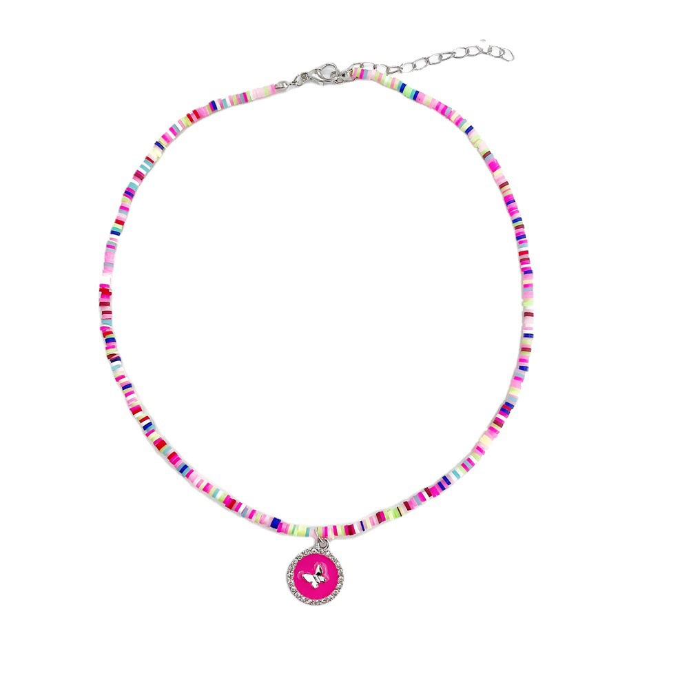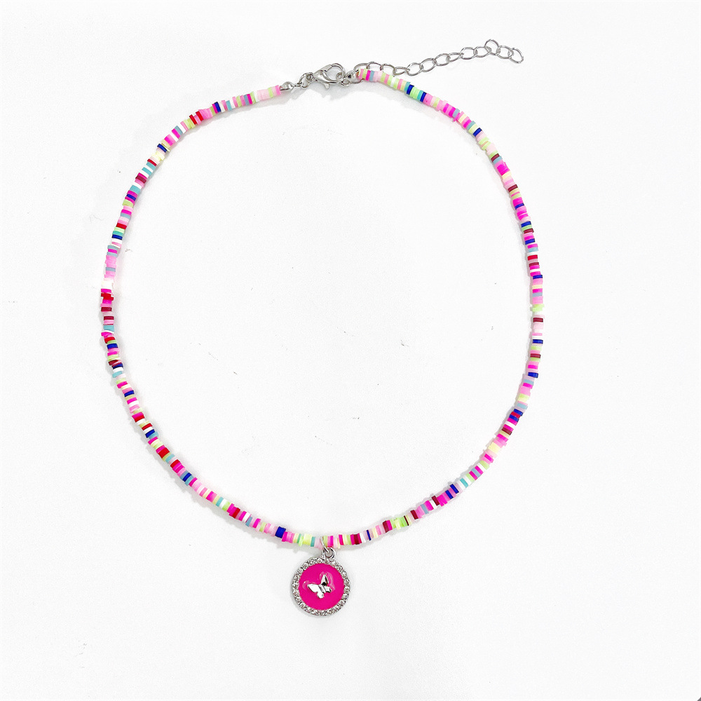 甜美糖果色滴油圆牌水钻蝴蝶多巴胺项链女波西米亚撞色软陶锁骨链