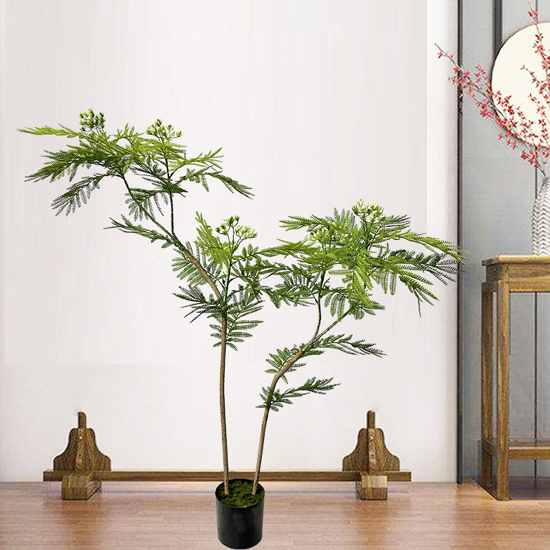 仿真植物盆栽双层叶蕨类盆景中式绿植客厅落地装饰摆件文竹家居