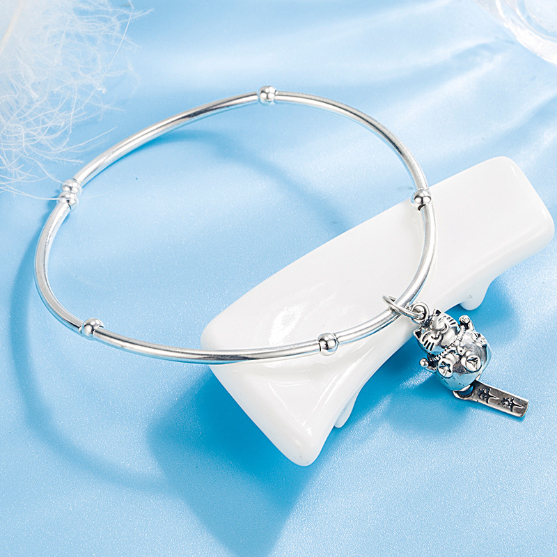 S925纯银可爱猫手链女 闺蜜年年好运复古泰银时尚手镯243DZ