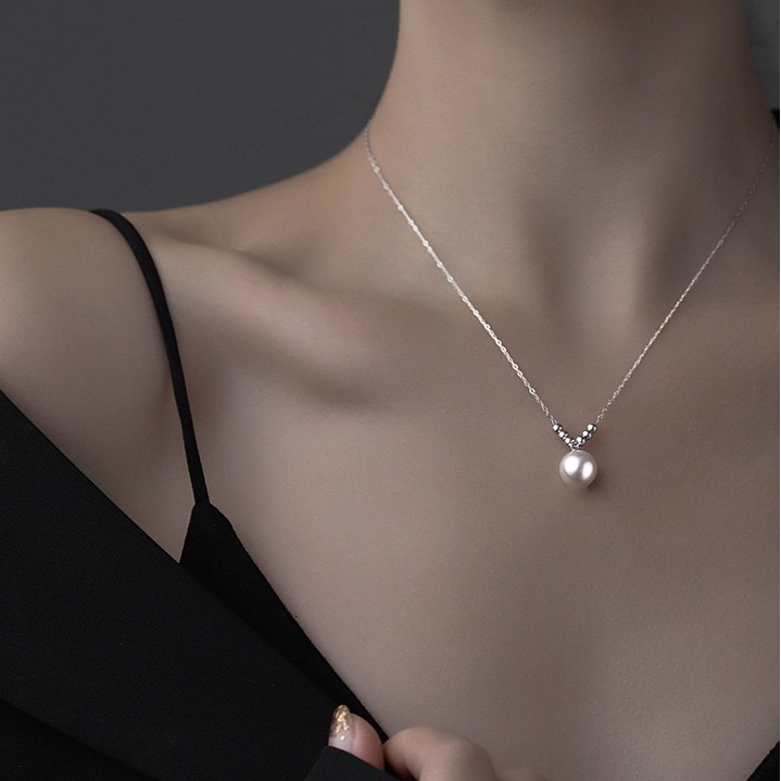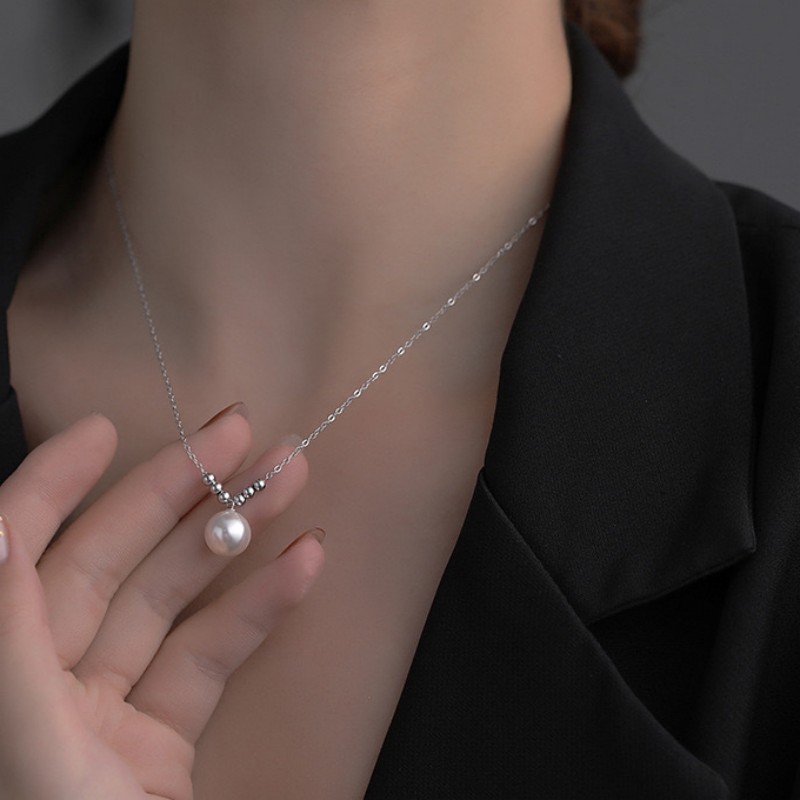 简约气质通体钛钢不掉色珍珠吊坠项链女百搭小众高级感串珠锁骨链