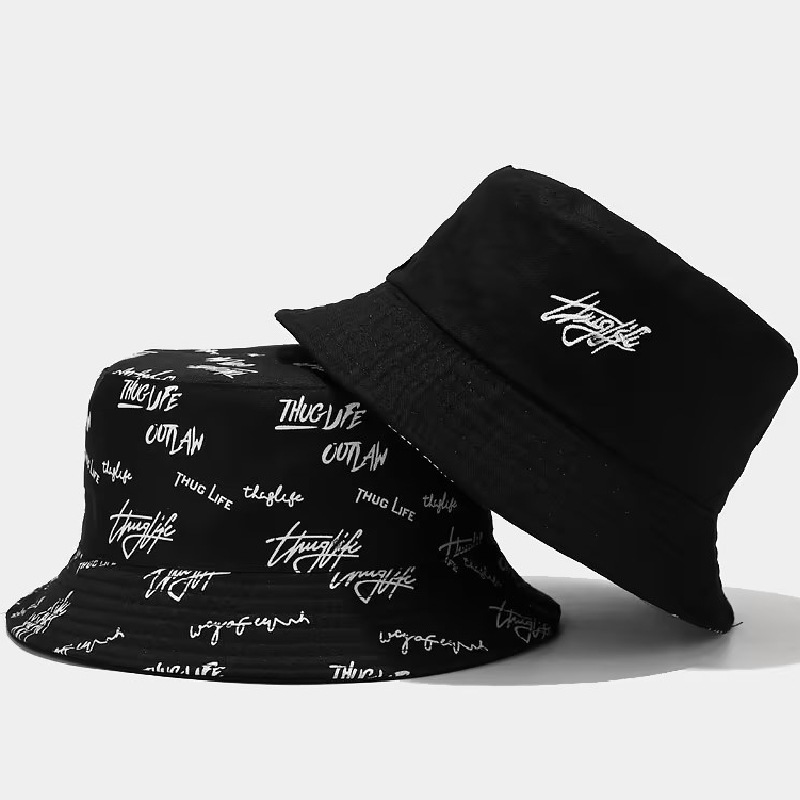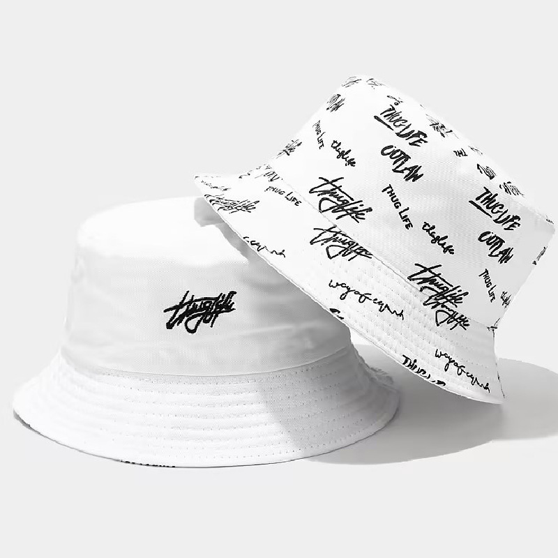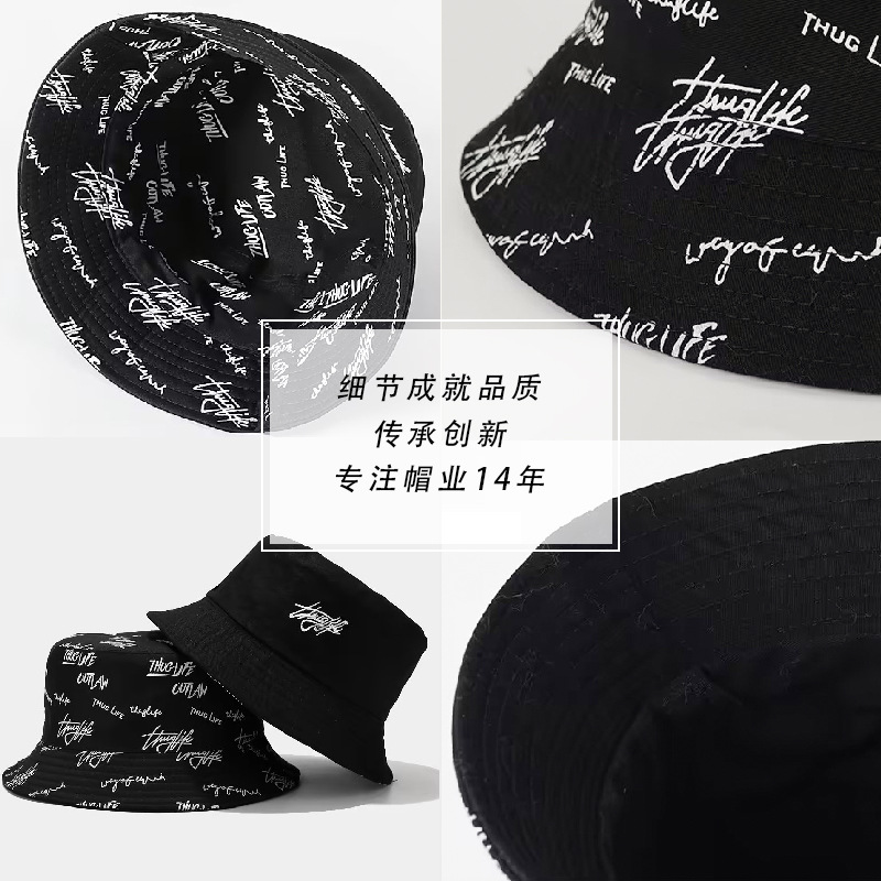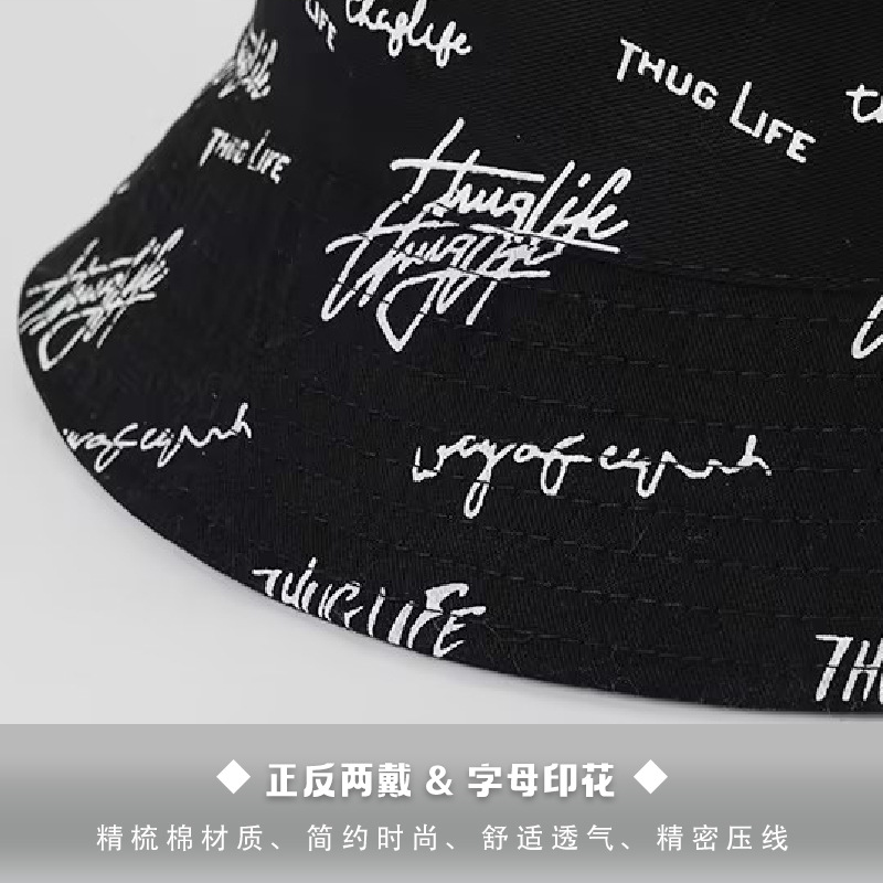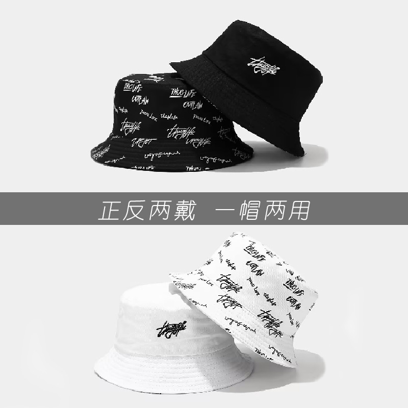 新款春秋渔夫帽子时尚双面遮阳帽字母印花太阳帽百搭盆帽防紫外线