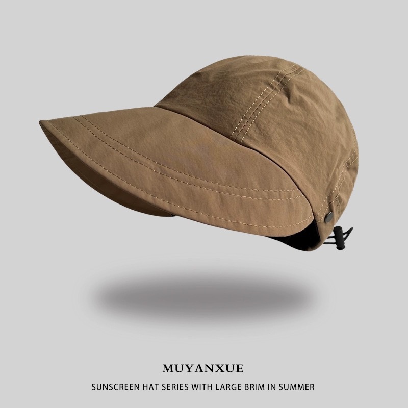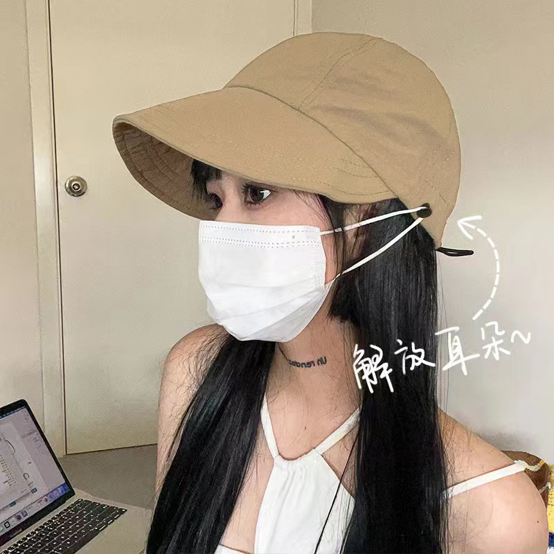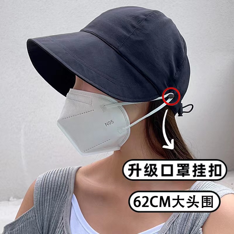 可挂口罩防晒帽子女春夏户外空顶防紫外线防晒帽大帽檐速干遮阳帽