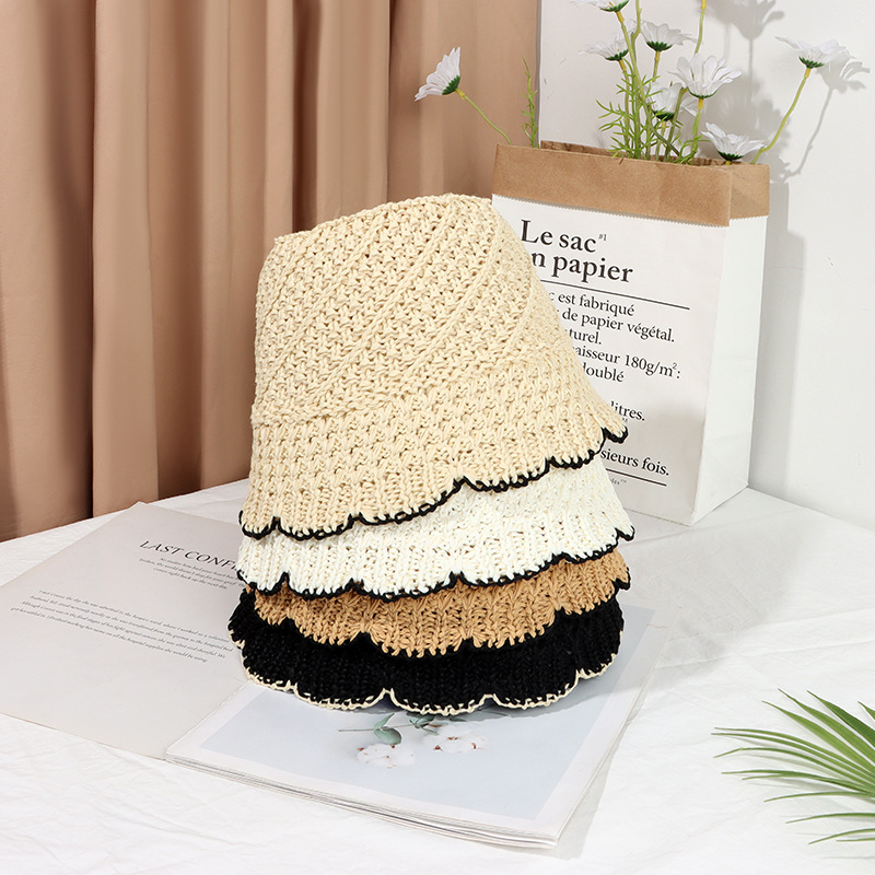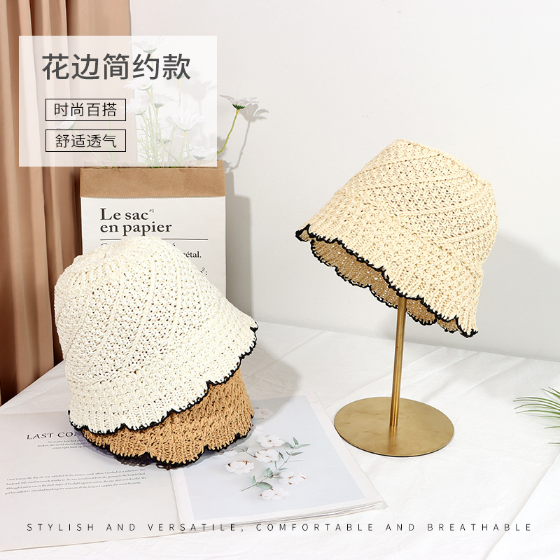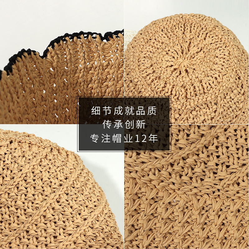 草帽女夏季遮阳防晒海边沙滩太阳帽镂空透气编织显脸小水桶渔夫帽