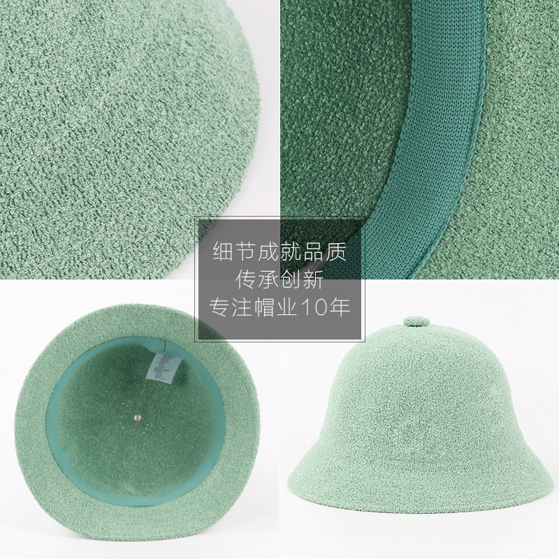 韩国kangol袋鼠夏季帽子圈圈纱网红纯色渔夫帽可刺绣毛巾布盆帽女