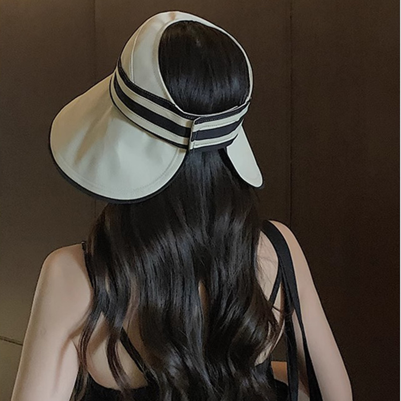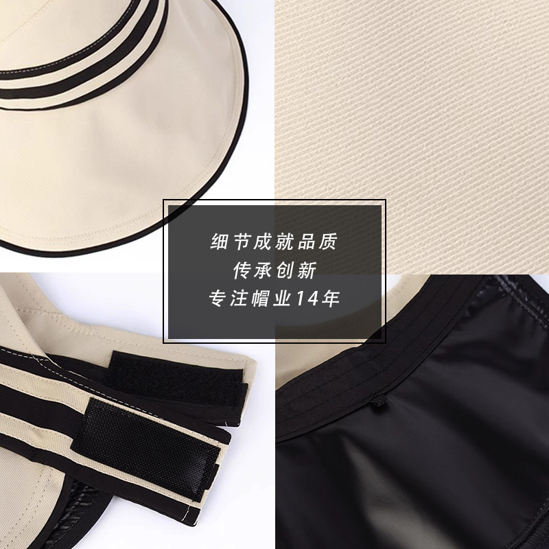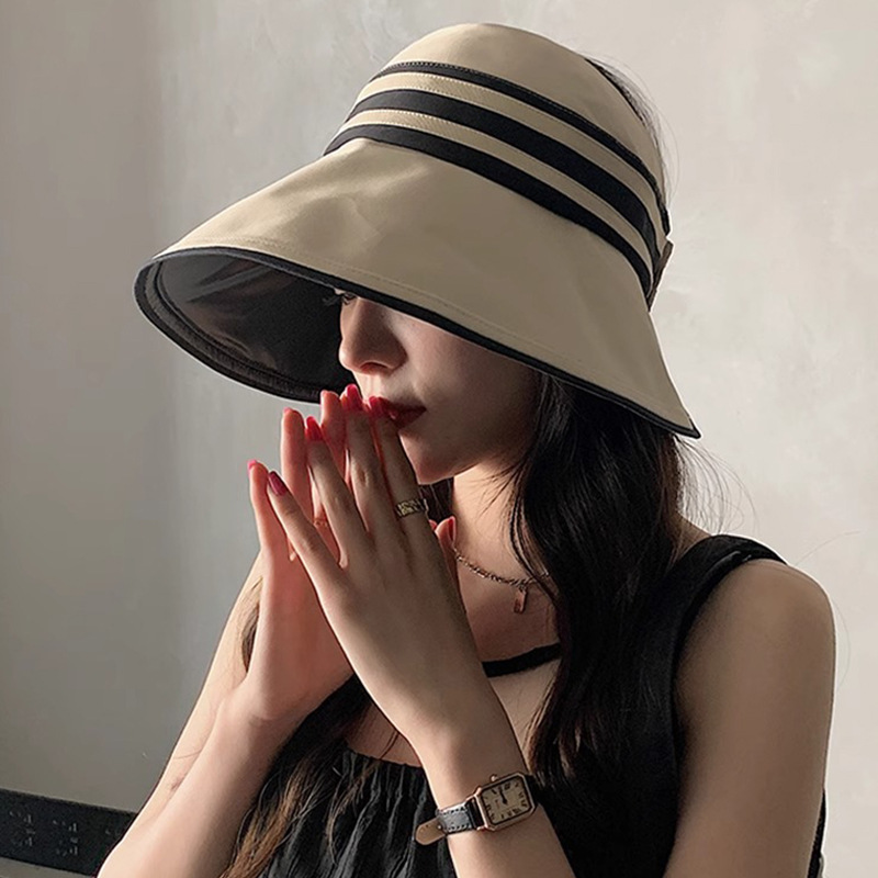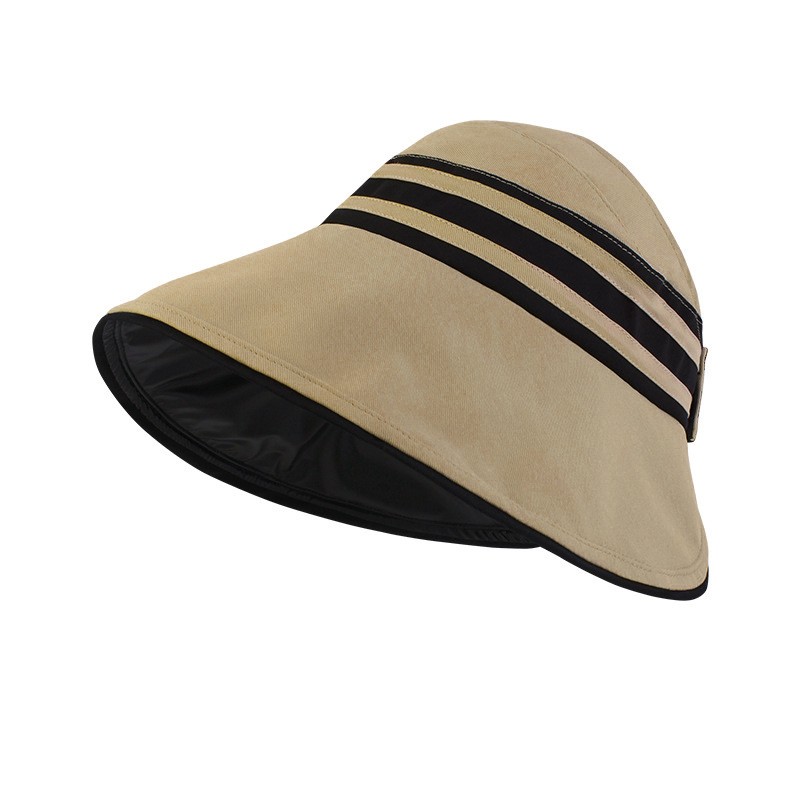 条纹渔夫帽女夏季防紫外线黑胶太阳帽可折叠遮阳百搭大檐空顶帽子