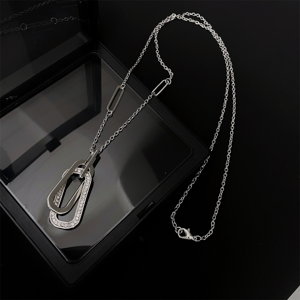 简约镶钻几何长款钛钢不掉色项链女时尚气质高级感环环相扣毛衣链